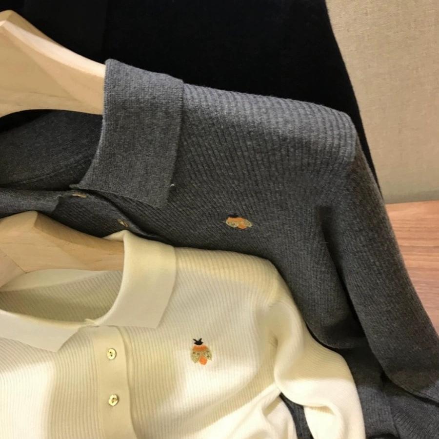 早秋法式翻领羊毛开衫女宽松显瘦软糯毛衣外套韩版刺绣针织衫百搭