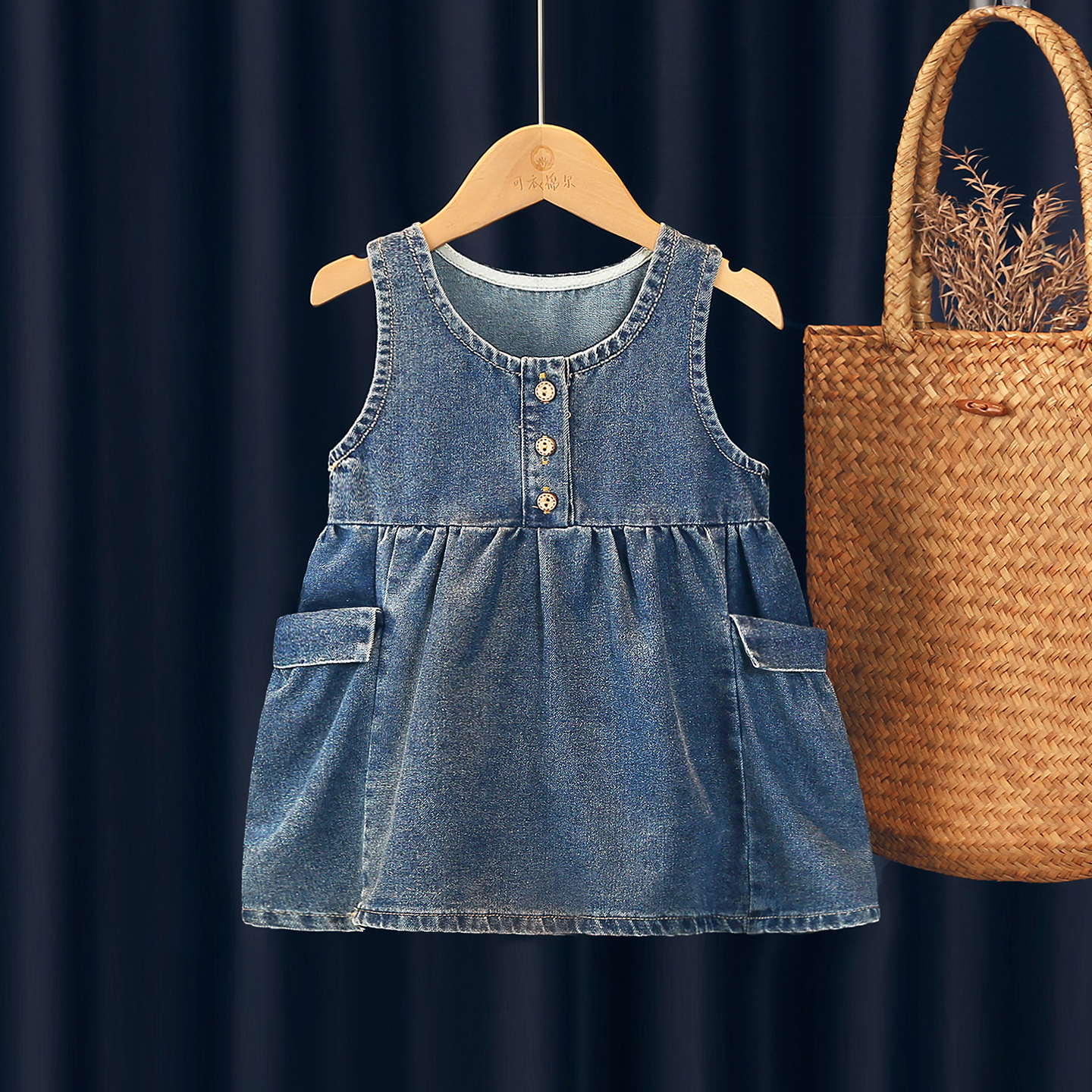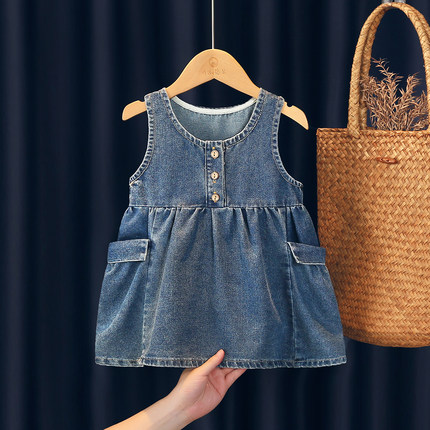 女童连衣裙秋2025新款女孩洋气好看儿童马甲裙宝宝纯棉牛仔背心裙