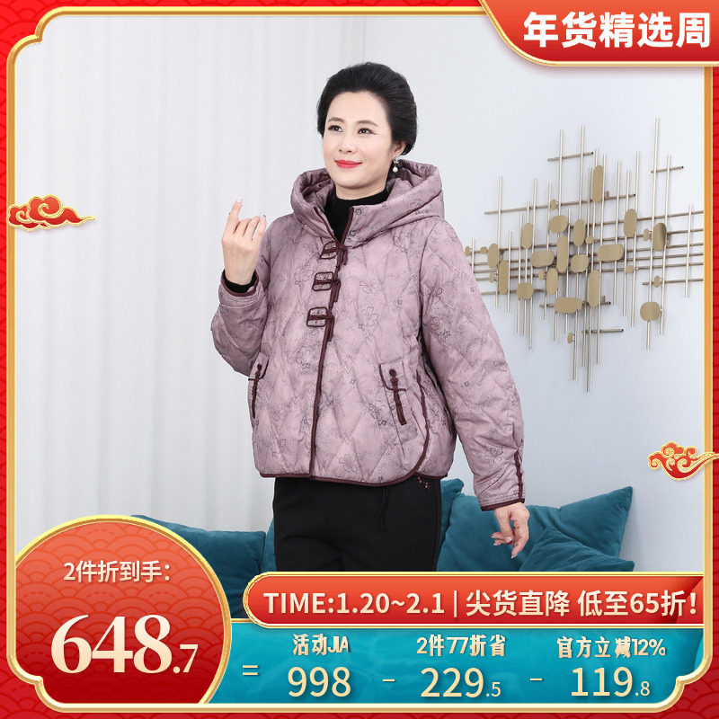 依佈中老年人新中式连帽鹅绒服2025冬装新款减龄妈妈装羽绒服外套