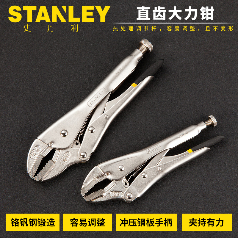 史丹利直齿大力钳7寸10寸加硬直齿平口钳子夹持钳水管钳84-371-23