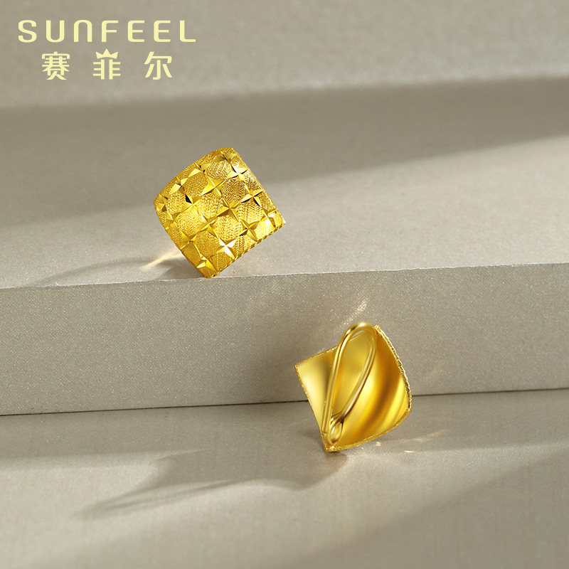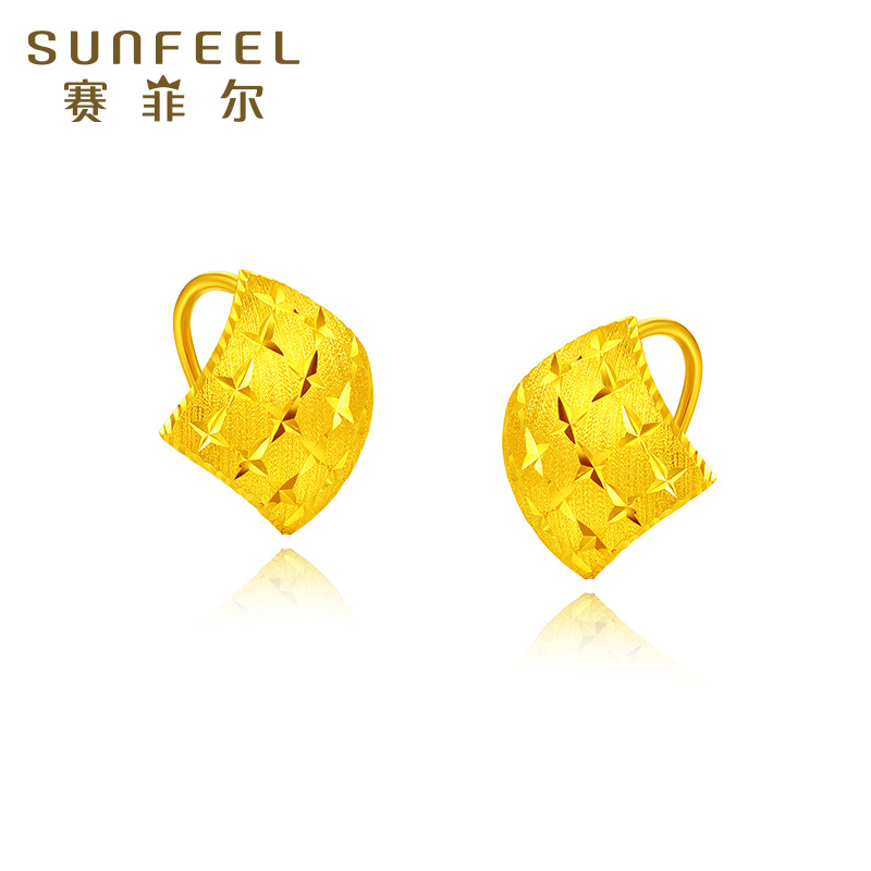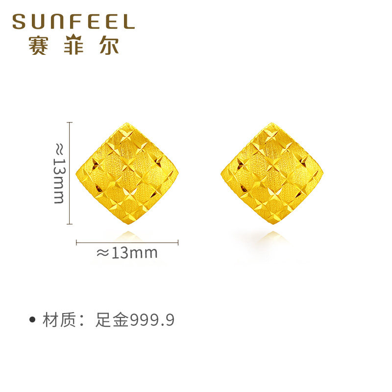 赛菲尔黄金耳饰足金999.9星辰耳钩时尚经典黄金菱形耳环女款送礼
