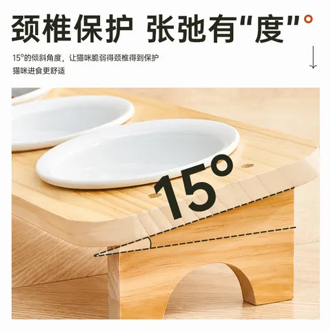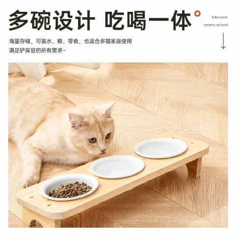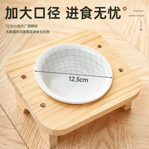 宠物用品猫粮碗保护颈椎实木猫咪防打翻猫碗水碗陶瓷食盆猫盆