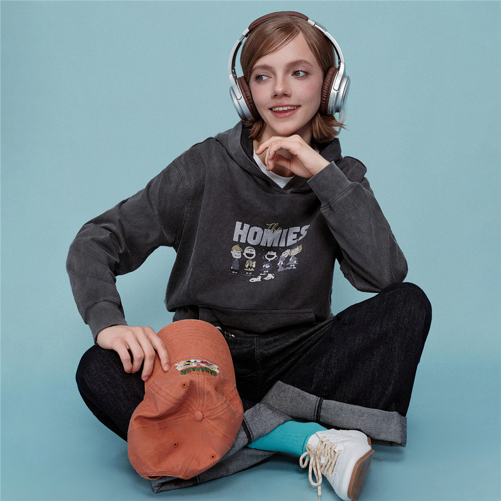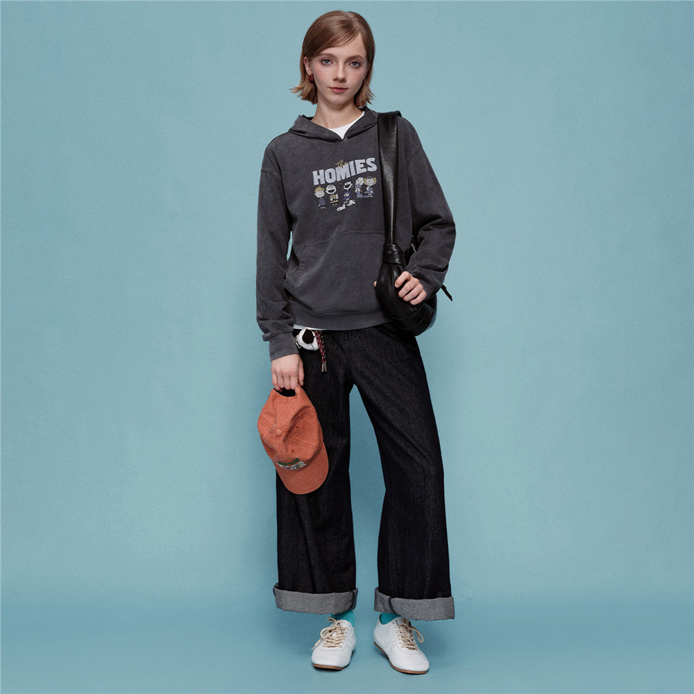 [史努比联名]佐丹奴女装印花纯棉水洗宽松落肩袖连帽卫衣18325709