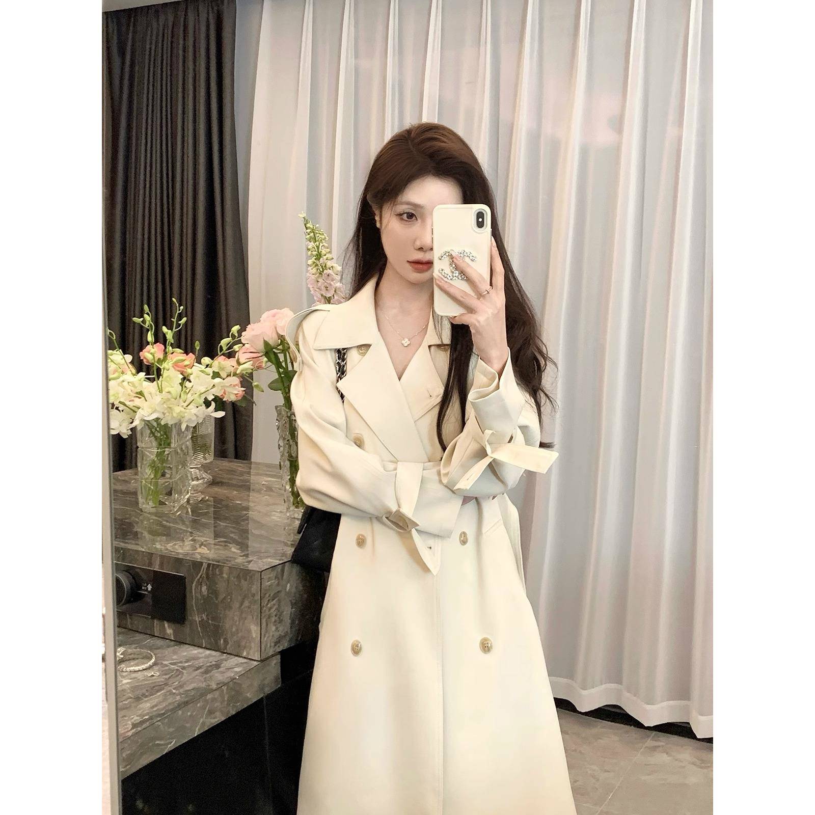 米白色风衣外套女2025春秋季新款中长款韩系气质小个子高级感大衣