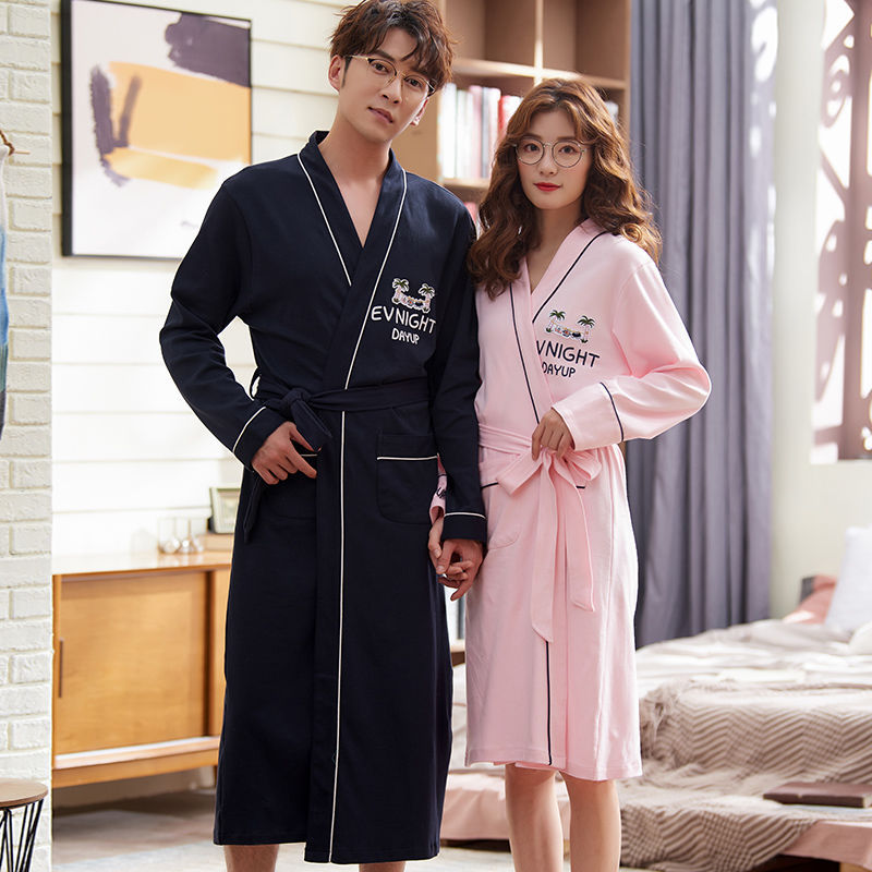 北极绒女春秋100%纯棉情侣浴袍男睡衣女士浴衣长款家居服加大