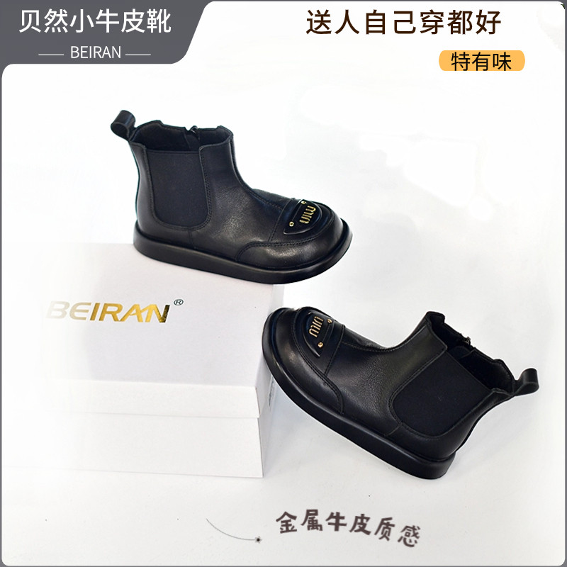 贝然儿童鞋真皮女童马丁靴公主靴男童宝矮靴女宝皮靴加绒中筒靴子