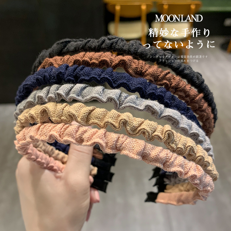 发箍女百搭外出网红韩国棉麻布艺褶皱细款头箍韩版压发夹简约发卡