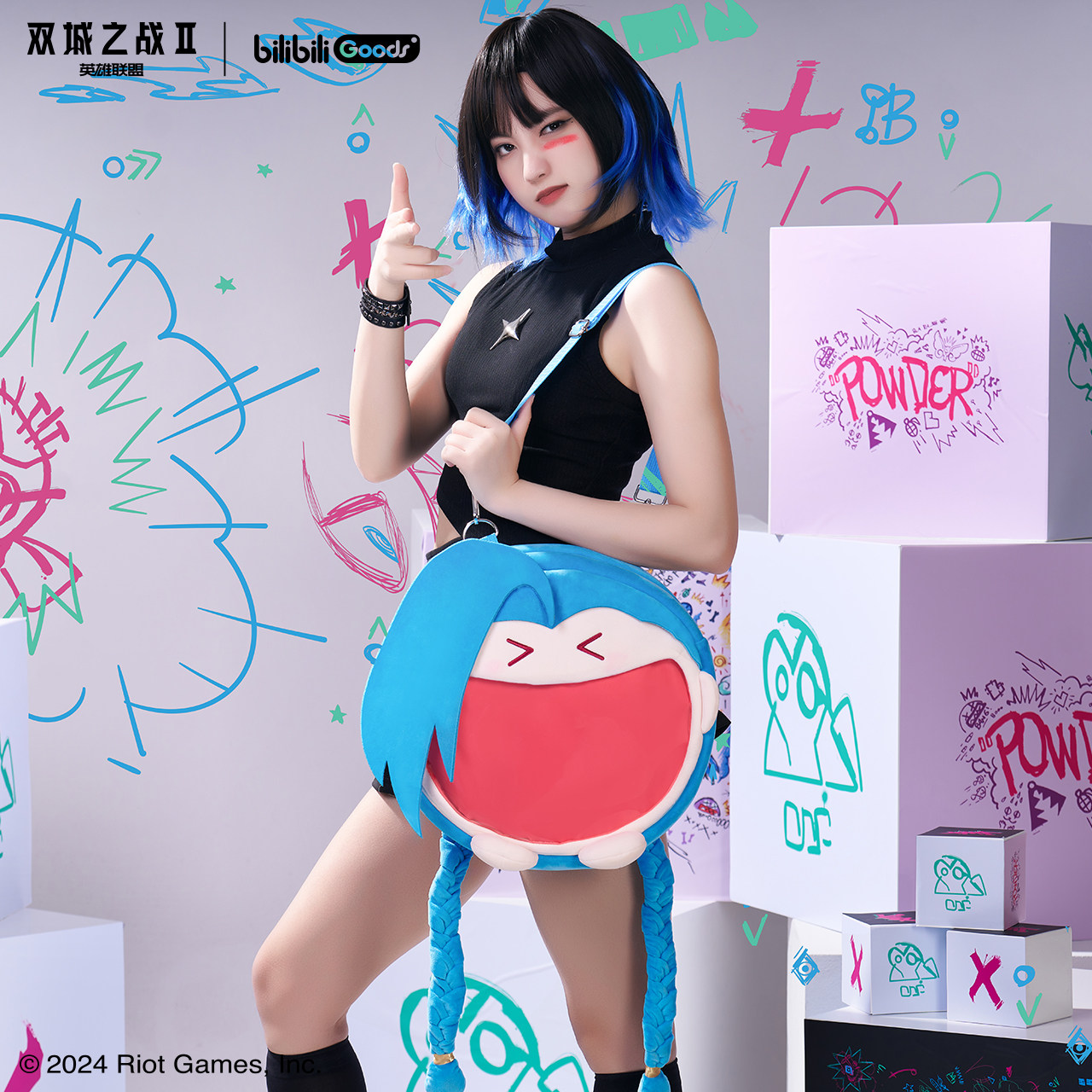 bilibiliGoods英雄联盟双城之战超开心痛包UWA毛绒痛包背包金克丝
