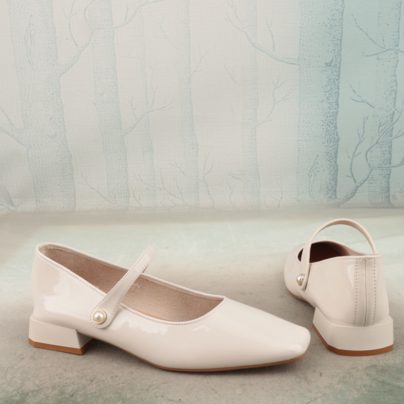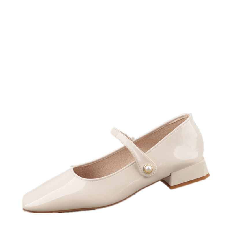 方头低跟漆皮软底舒适玛丽珍鞋