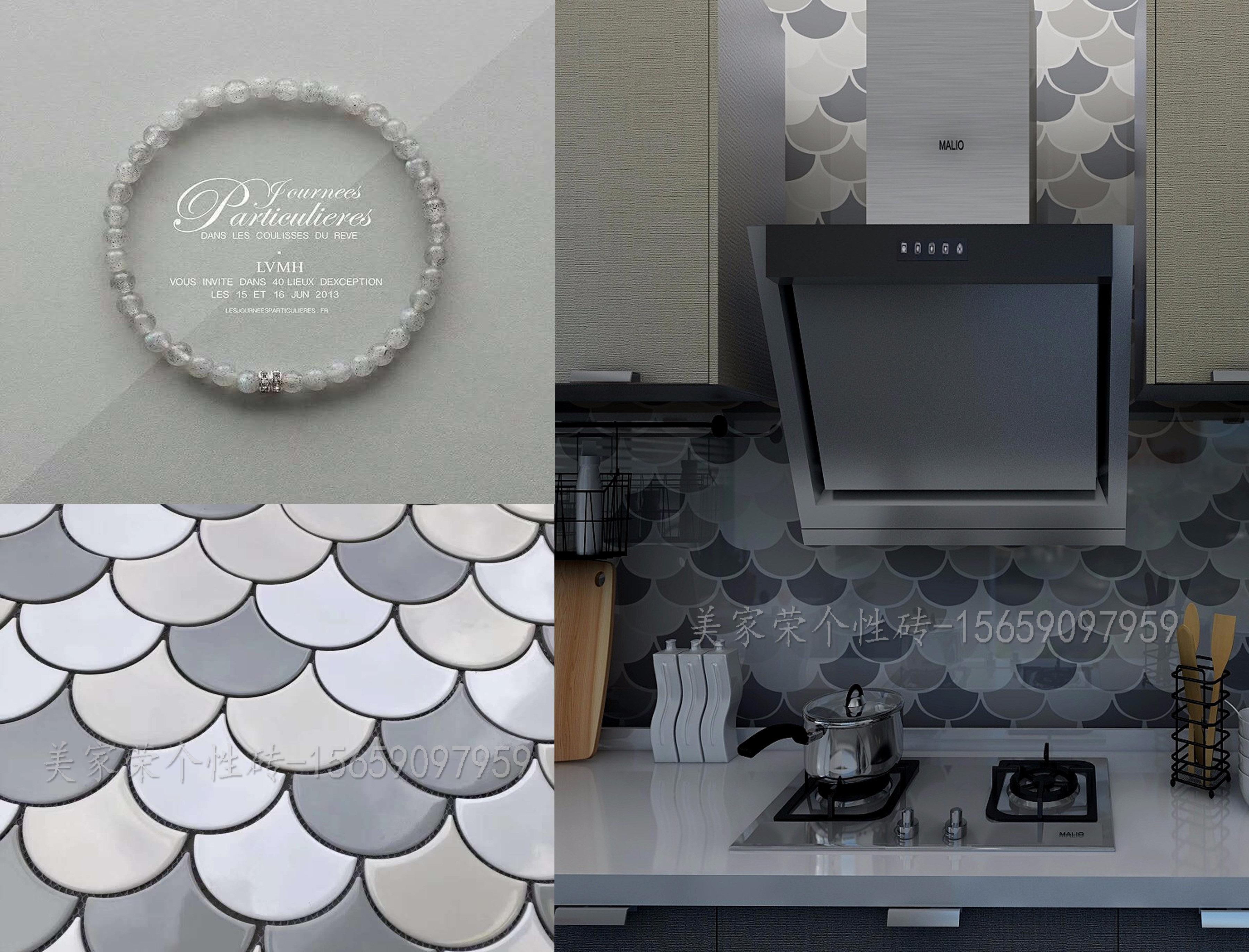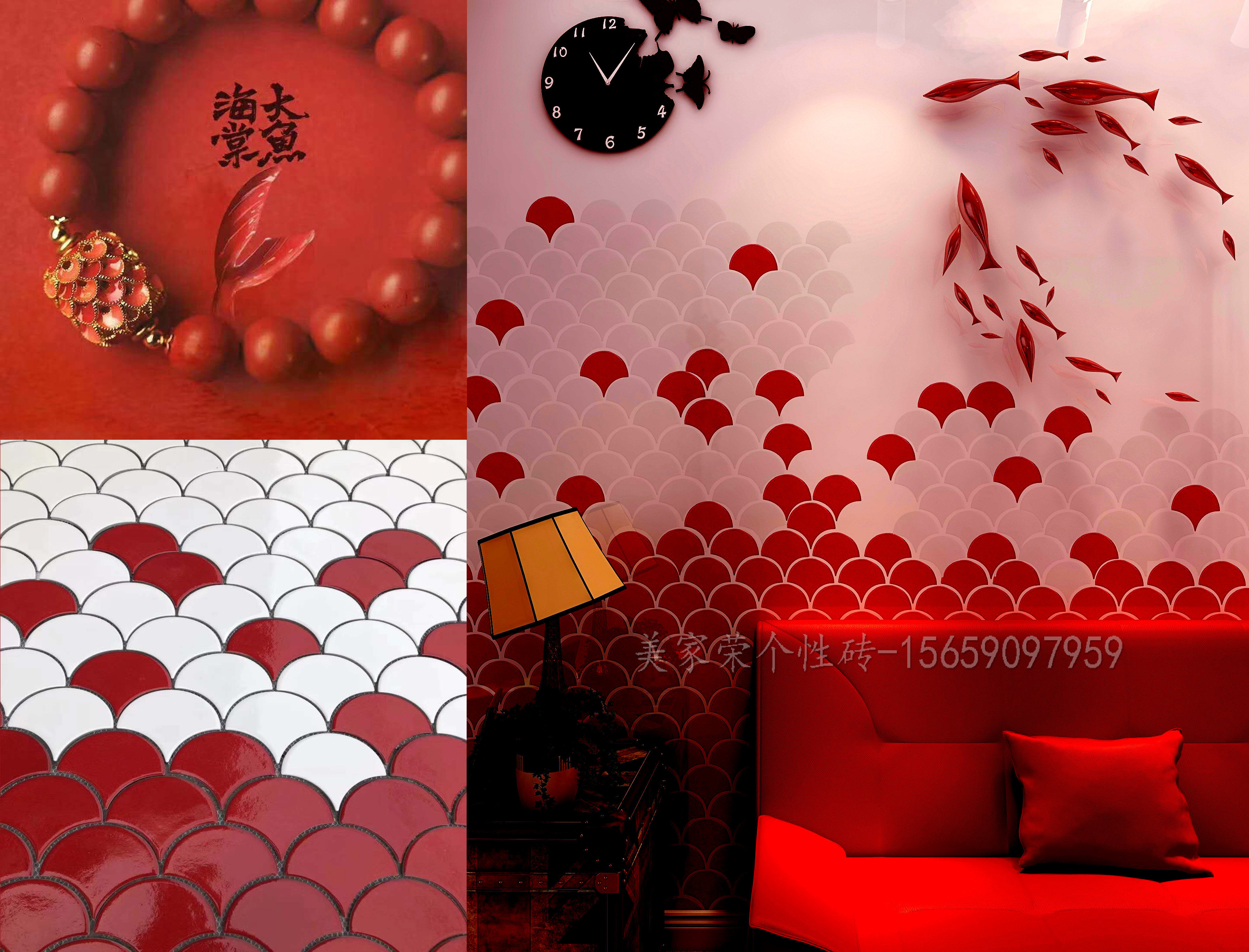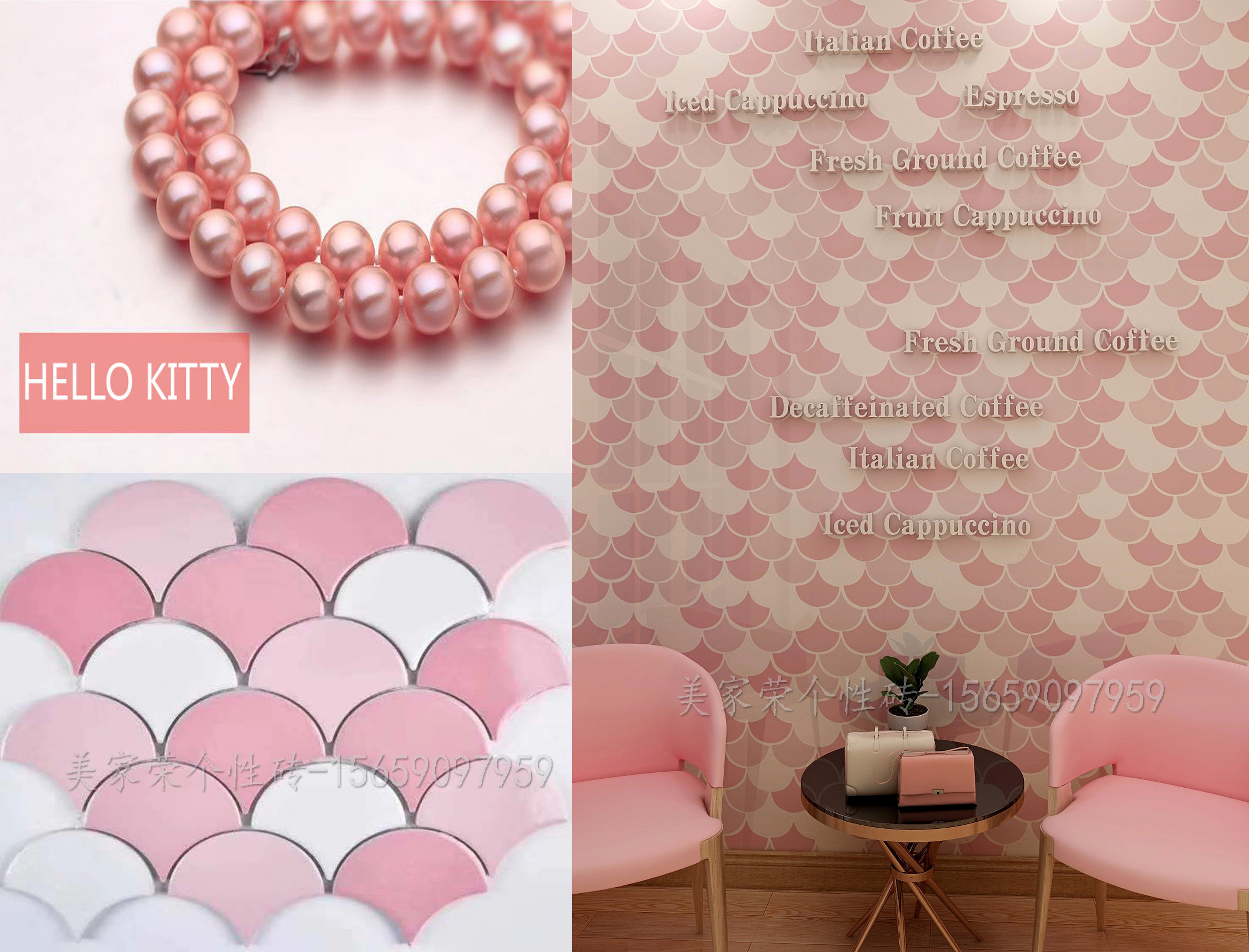 新品鱼鳞陶瓷马赛克客厅玄关电视背景墙贴厨房卫生间粉色瓷砖