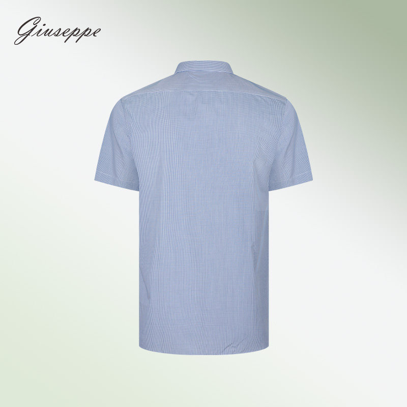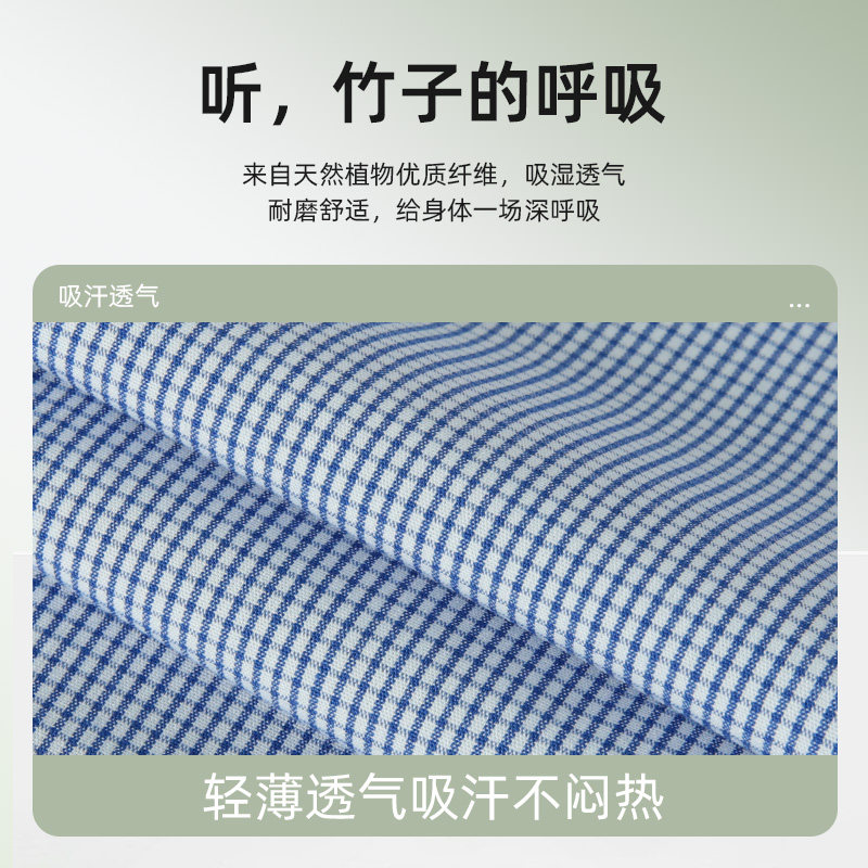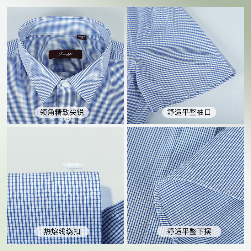 乔治白夏季薄款竹纤维男士短袖衬衫尖领休闲直筒格子上衣