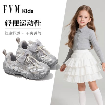 女童鞋子儿童老爹运动鞋2026新款芭蕾德训春季银色巨好看板鞋大童