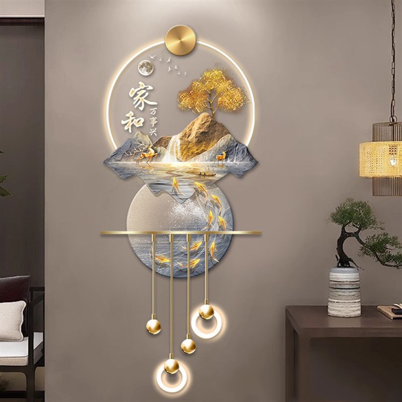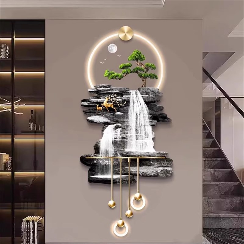 迎客松玄c关装饰画立体壁灯山水风景流水生财入户走廊过道壁画