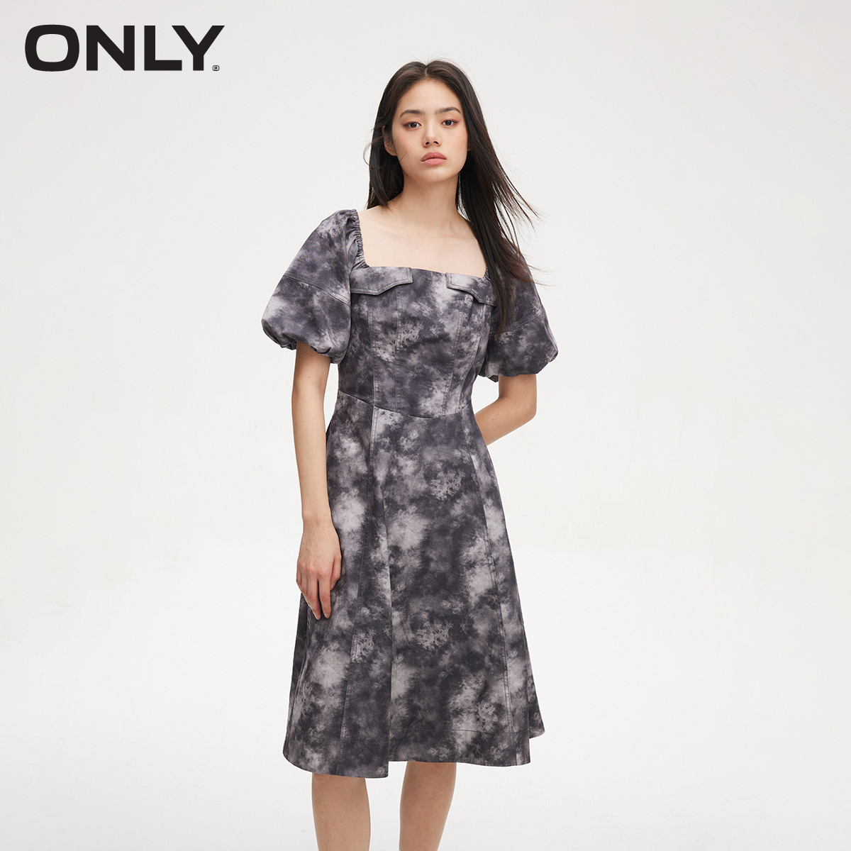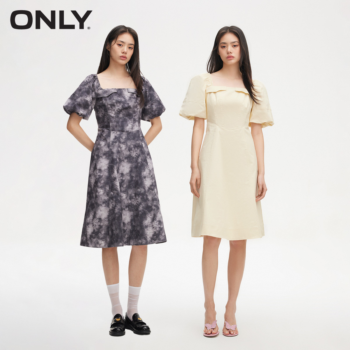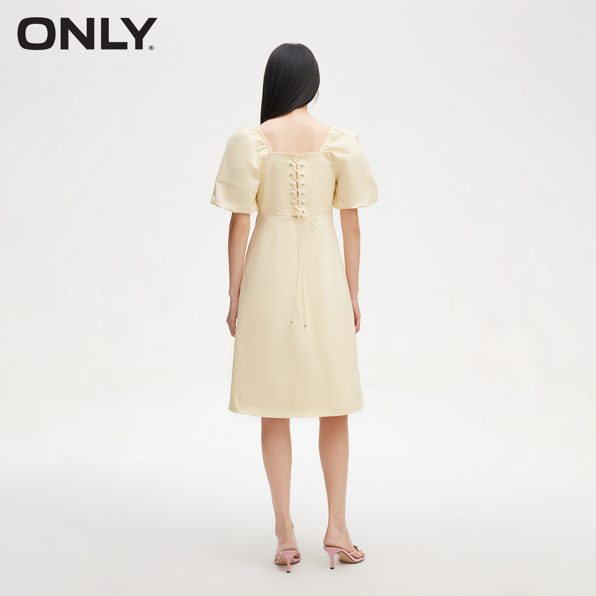 ONLY夏季时尚灯笼袖方领纯色中长款连衣裙女|124107069