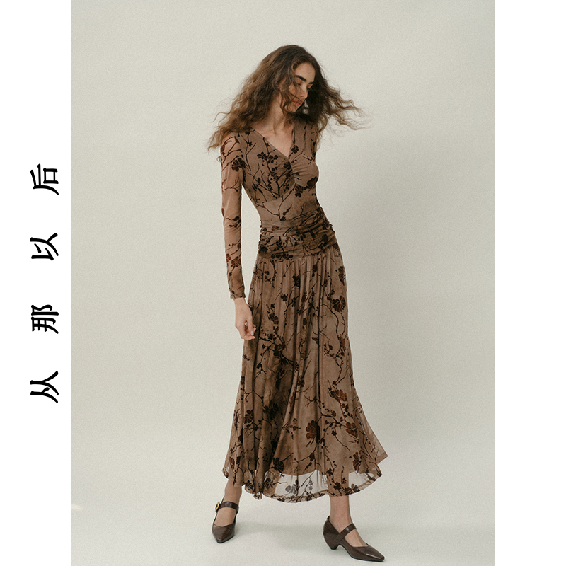 从那以后碎花旗袍裙丝绒裙子冬季穿搭礼服长裙新中式连衣裙女秋冬