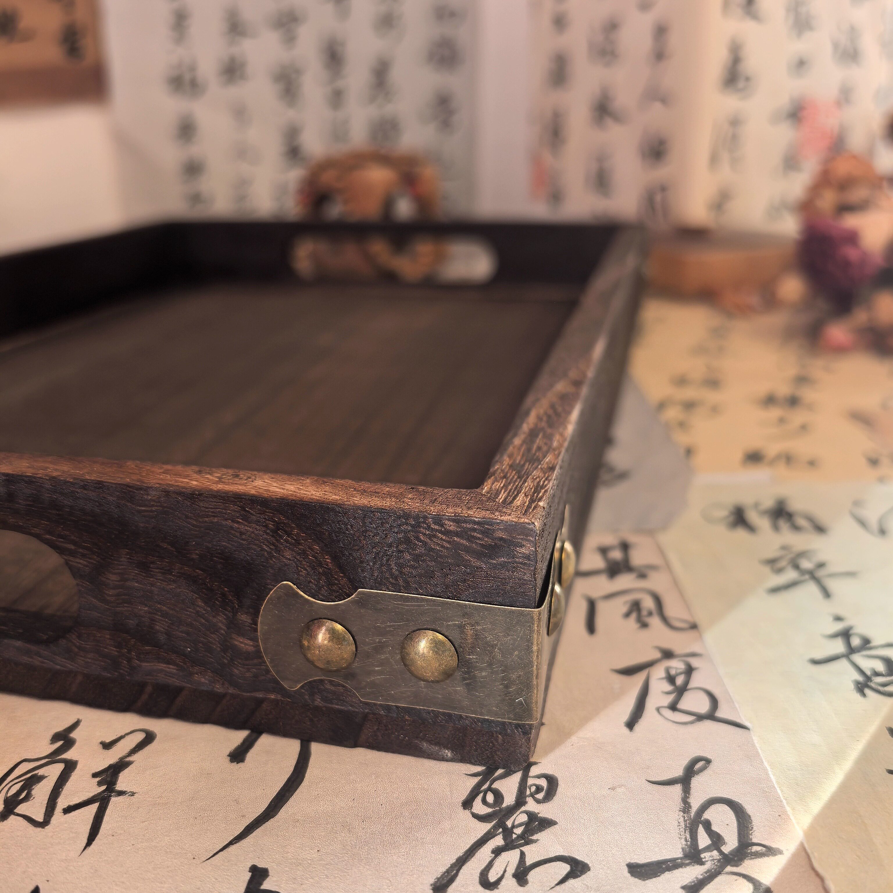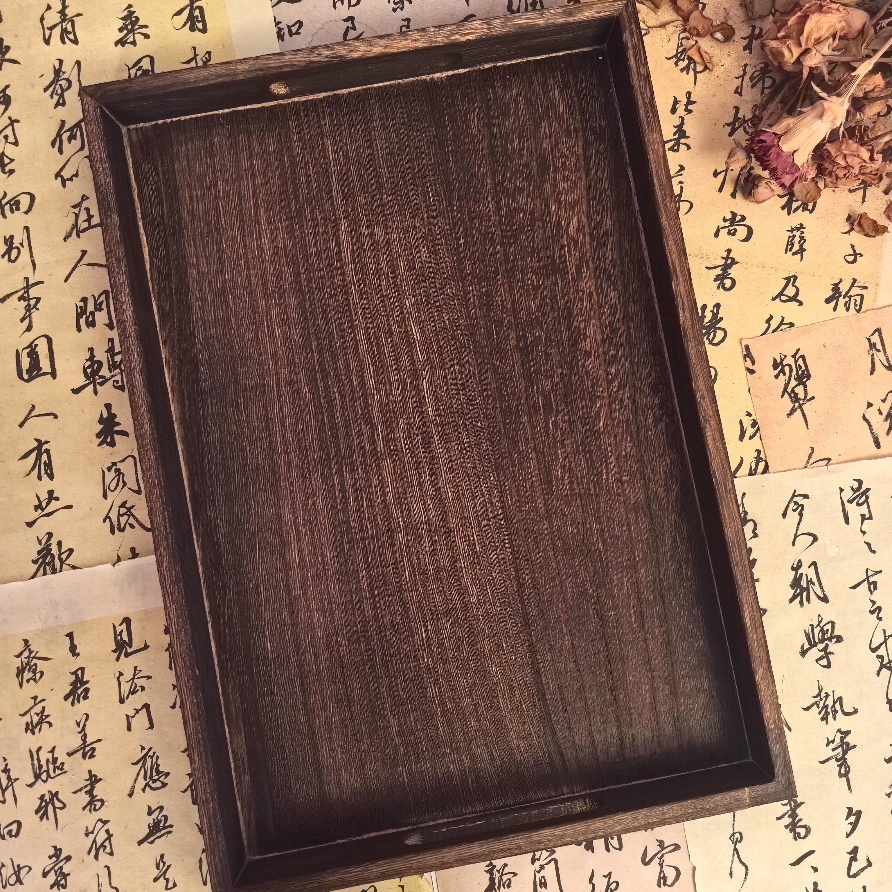 本店同款中式烧桐木包角托盘木盘果盘拍照道具茶盘咖啡厅酒店餐盘