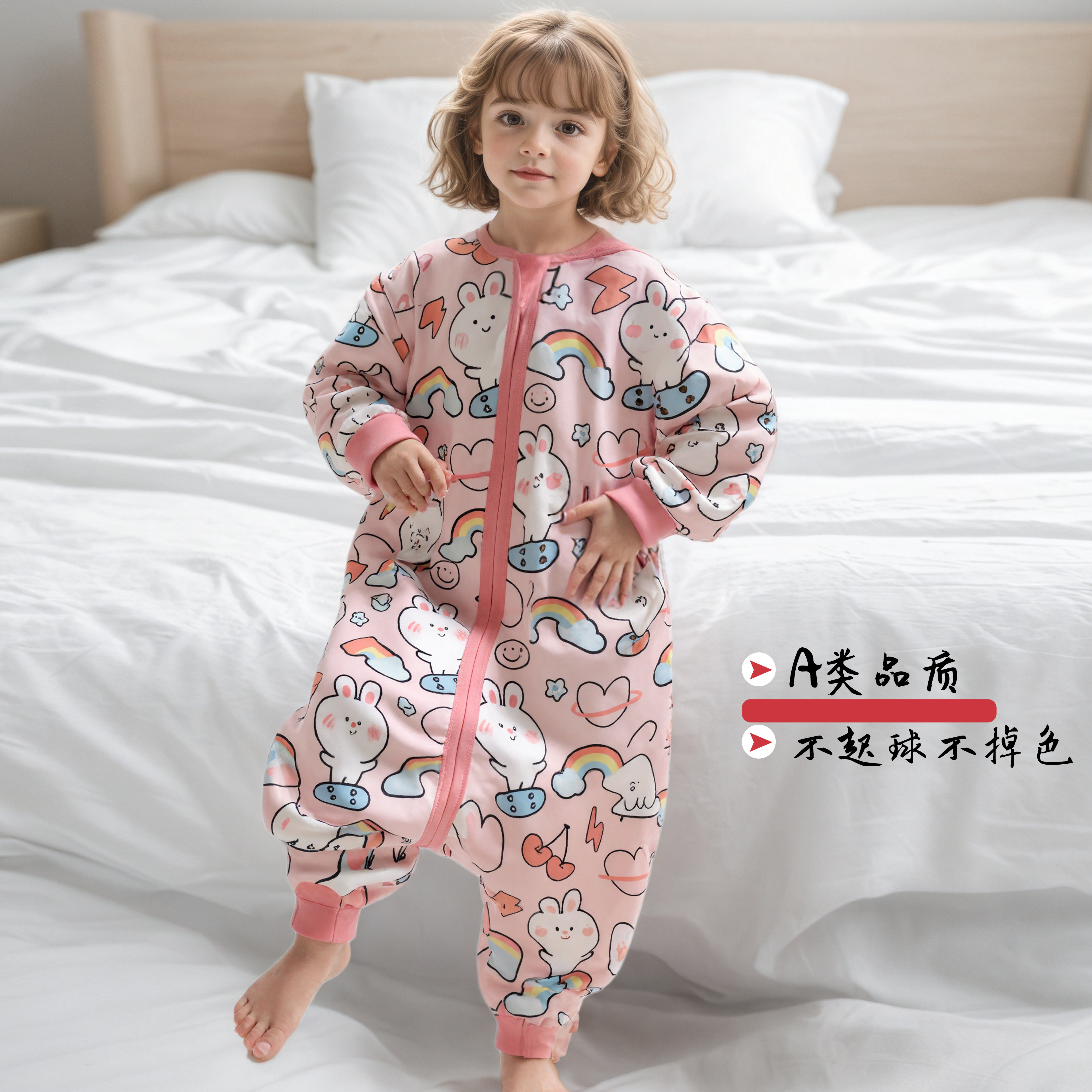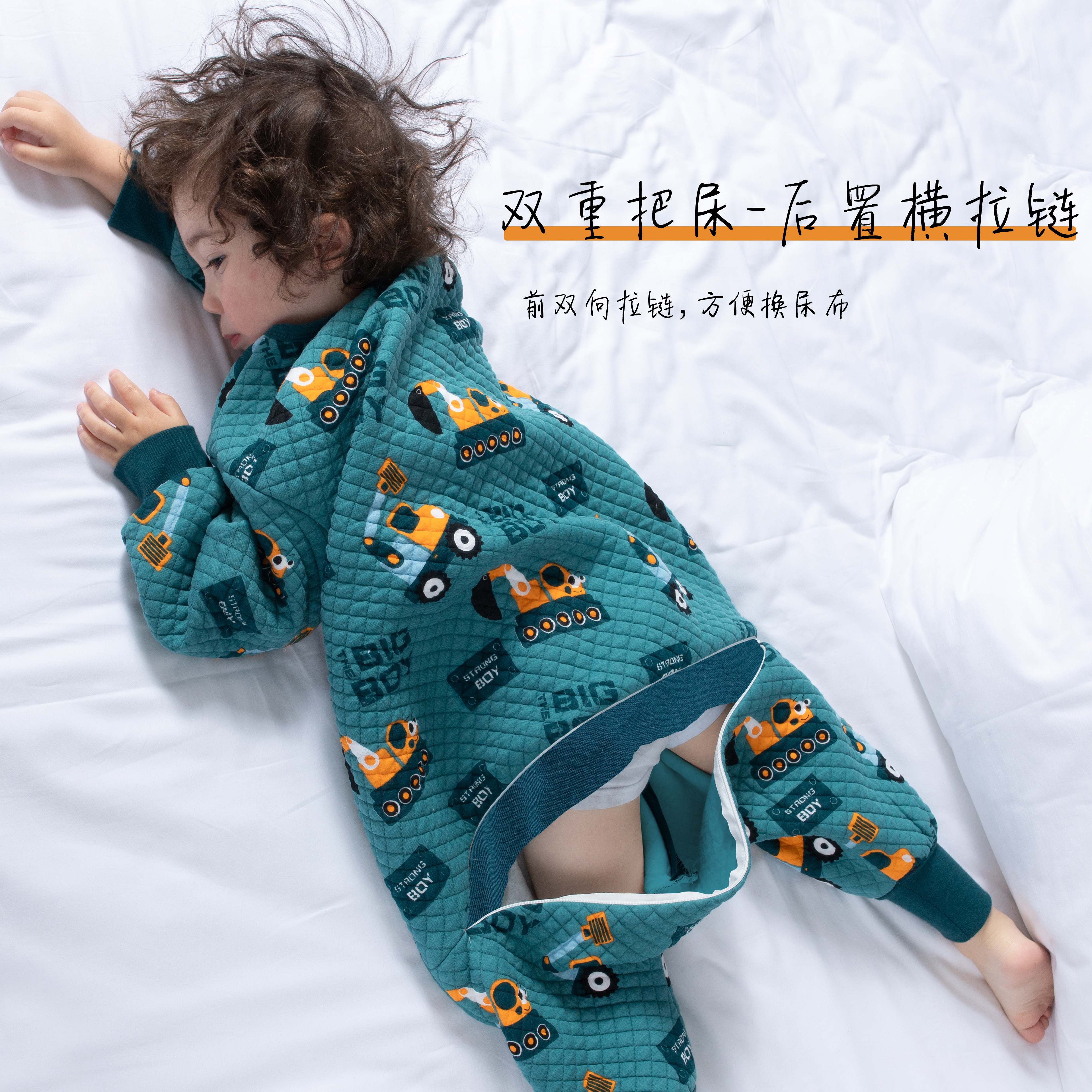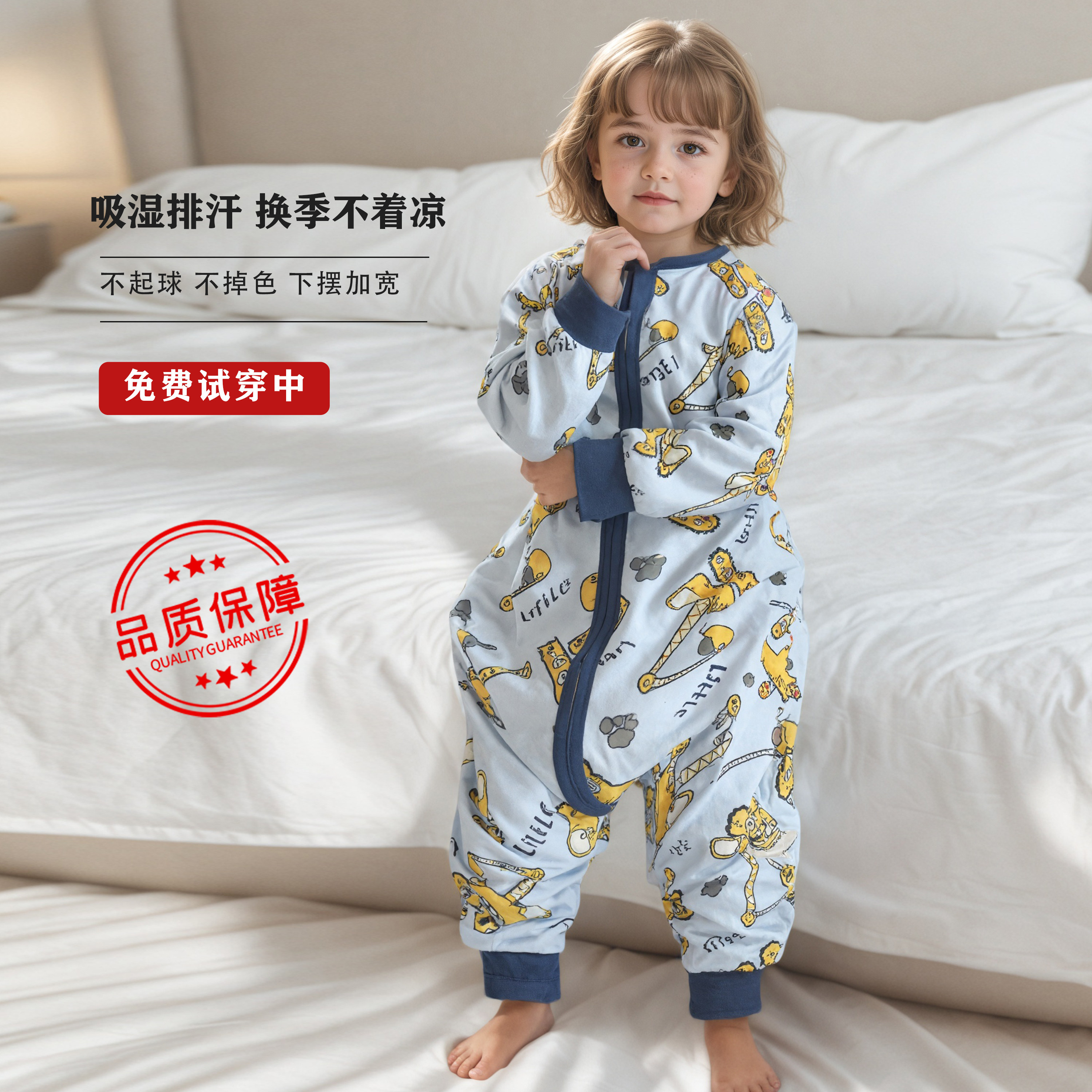 超人豆豆婴儿童分腿睡袋春秋宝宝纯棉睡衣中大童防踢被神器四季款