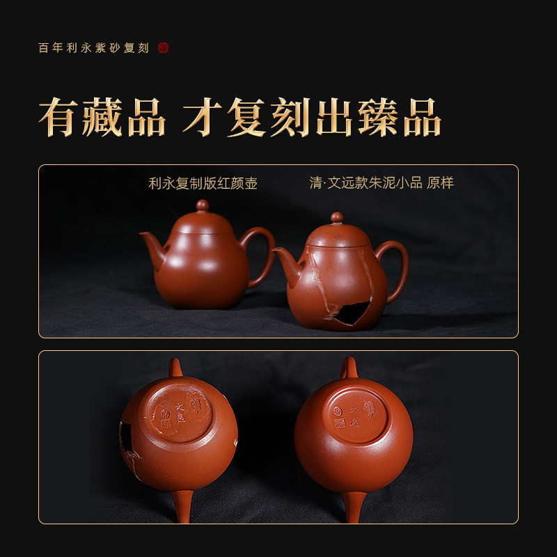百年利永紫砂壶宜兴泡茶壶茶具纯全手工朱泥款文远小品复刻红颜壶