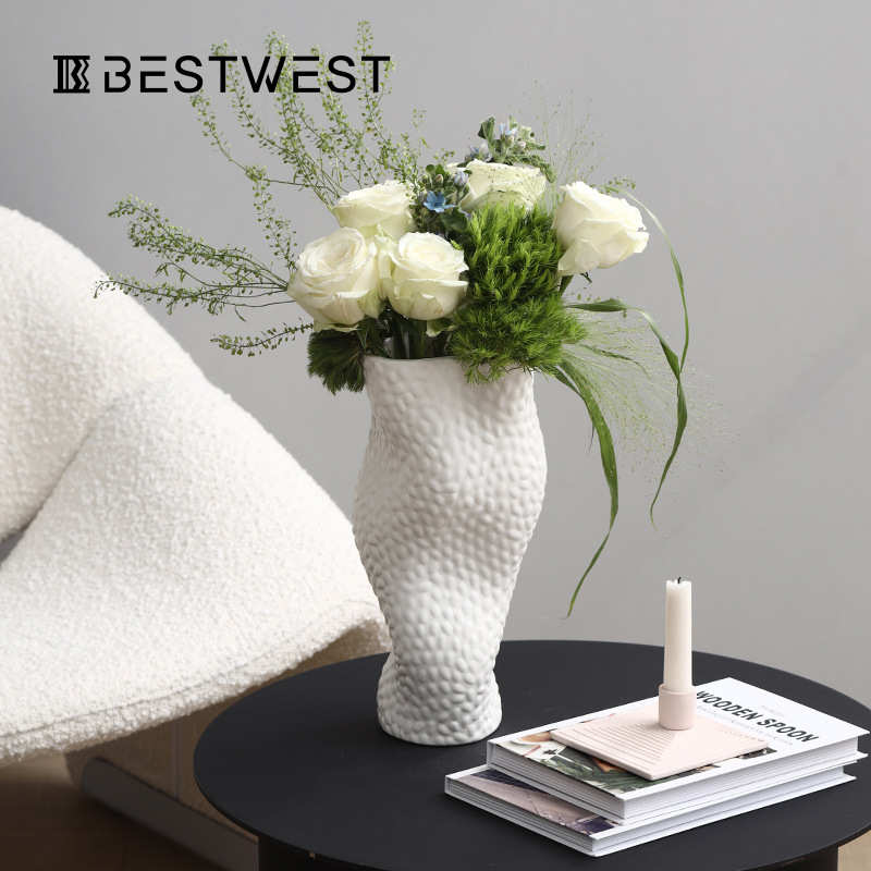 扭曲风创意博花瓶陶瓷摆件样板间装饰品家居家居白色ins 西釉面