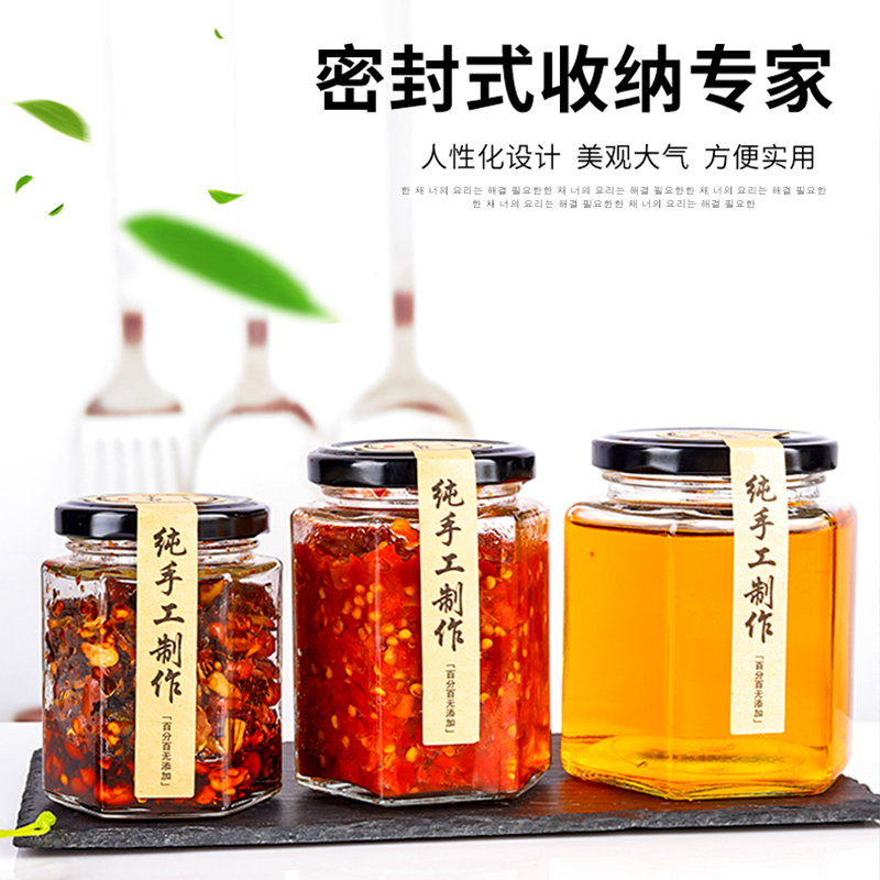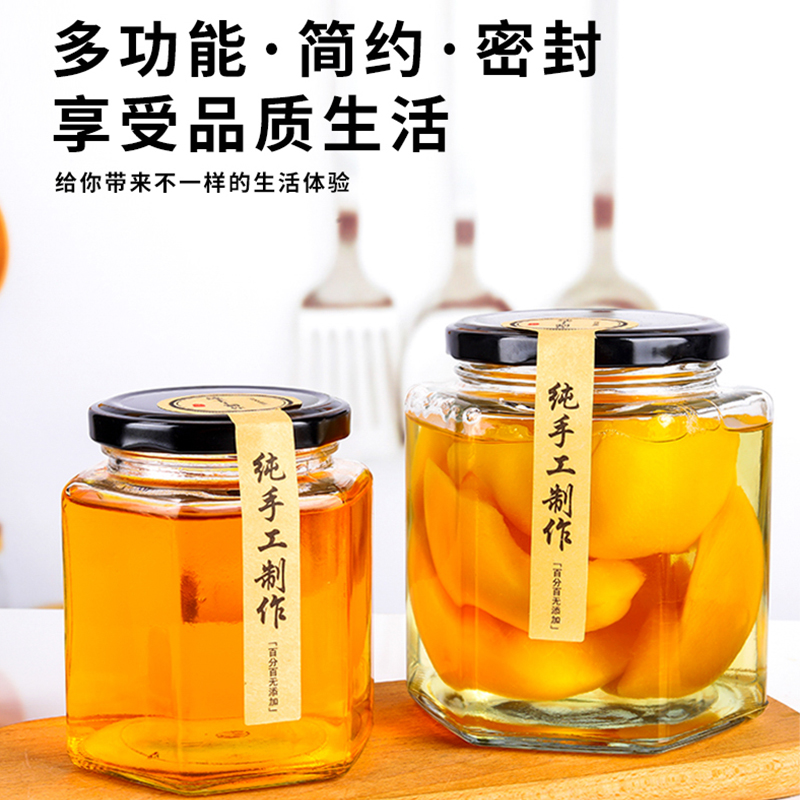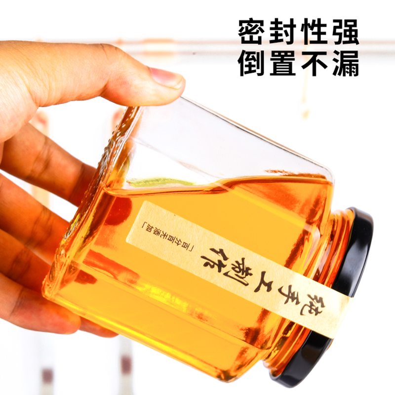 六棱玻璃罐密封食品级小带盖空一斤蜂蜜柠檬膏辣椒果酱专用瓶子