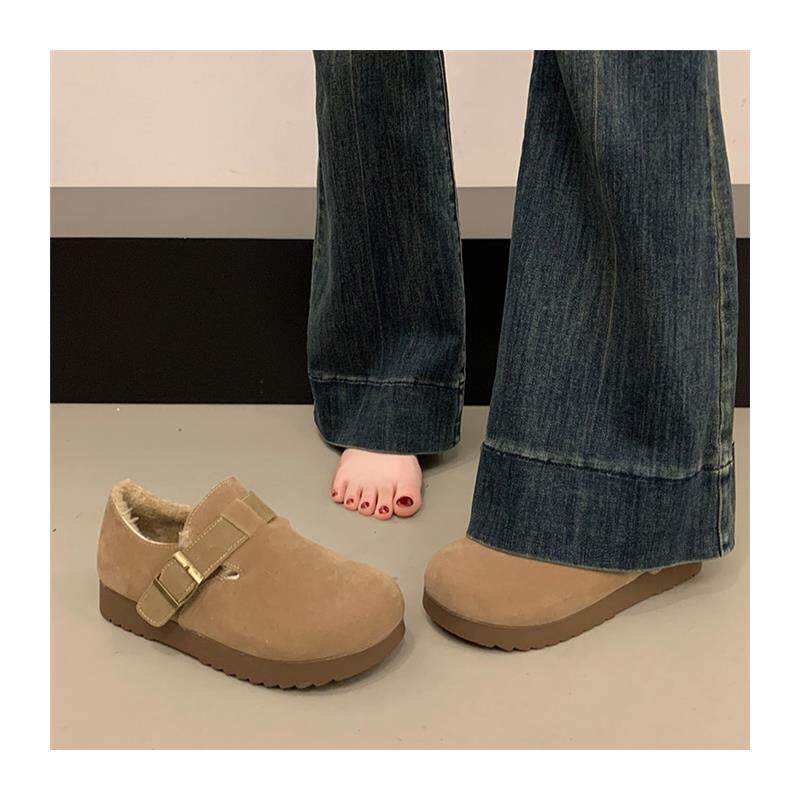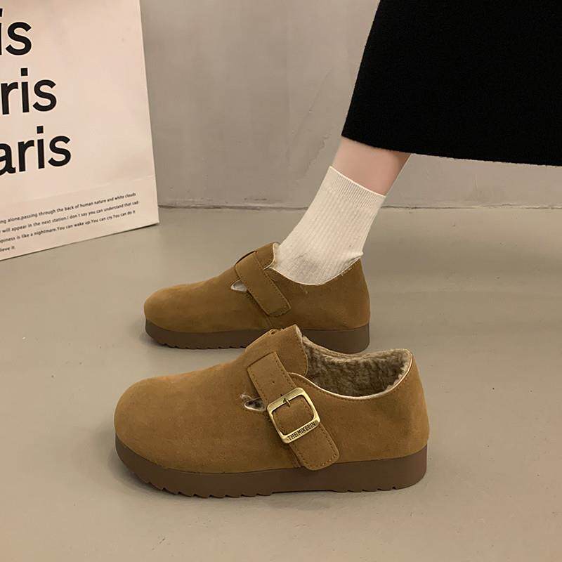 勃肯鞋女2025春秋新款复古厚底棉鞋一脚蹬孕妇全包博肯鞋豆豆鞋子