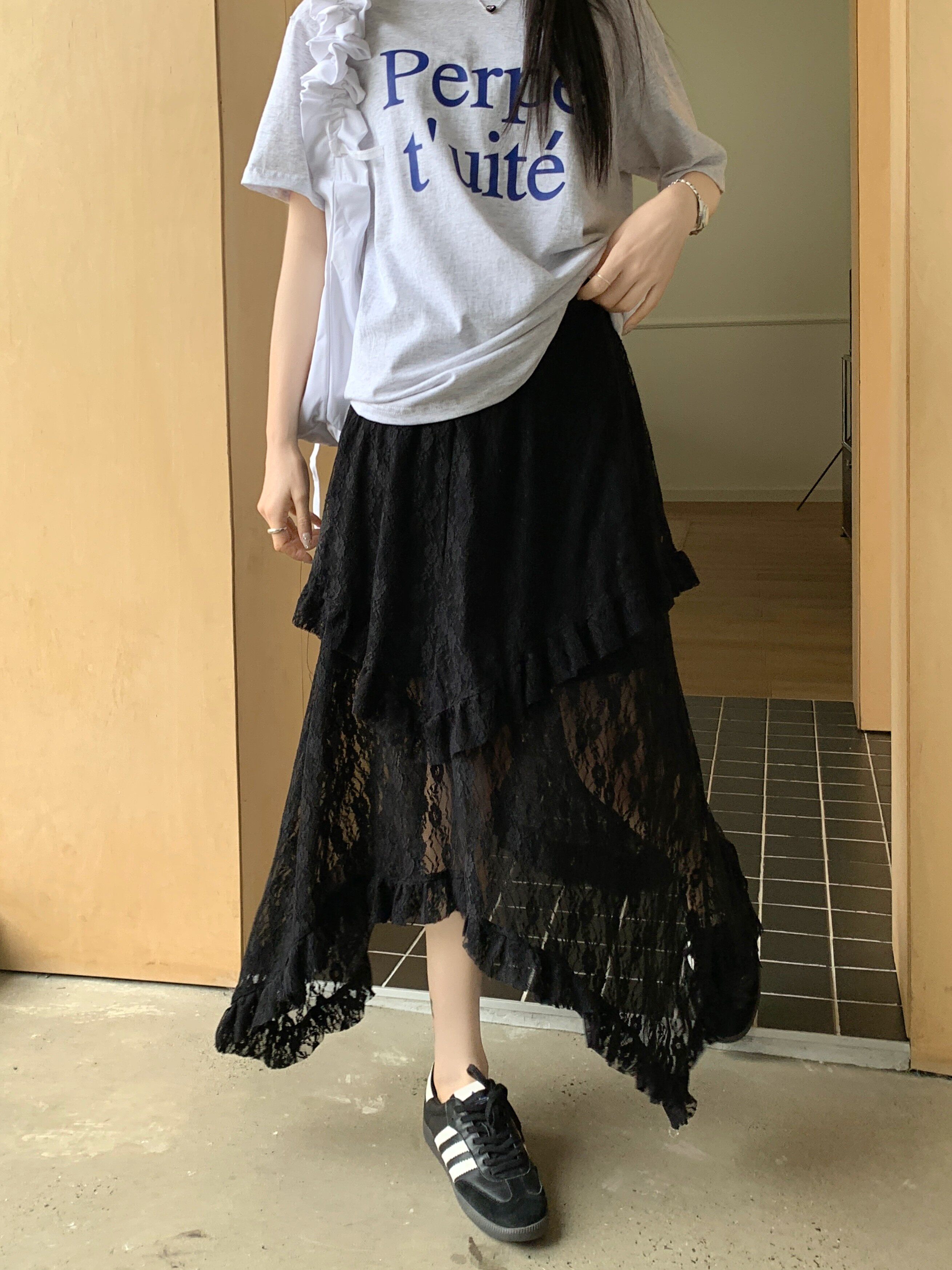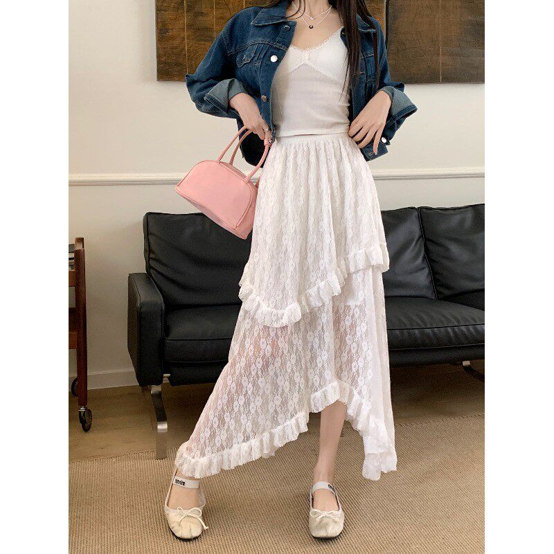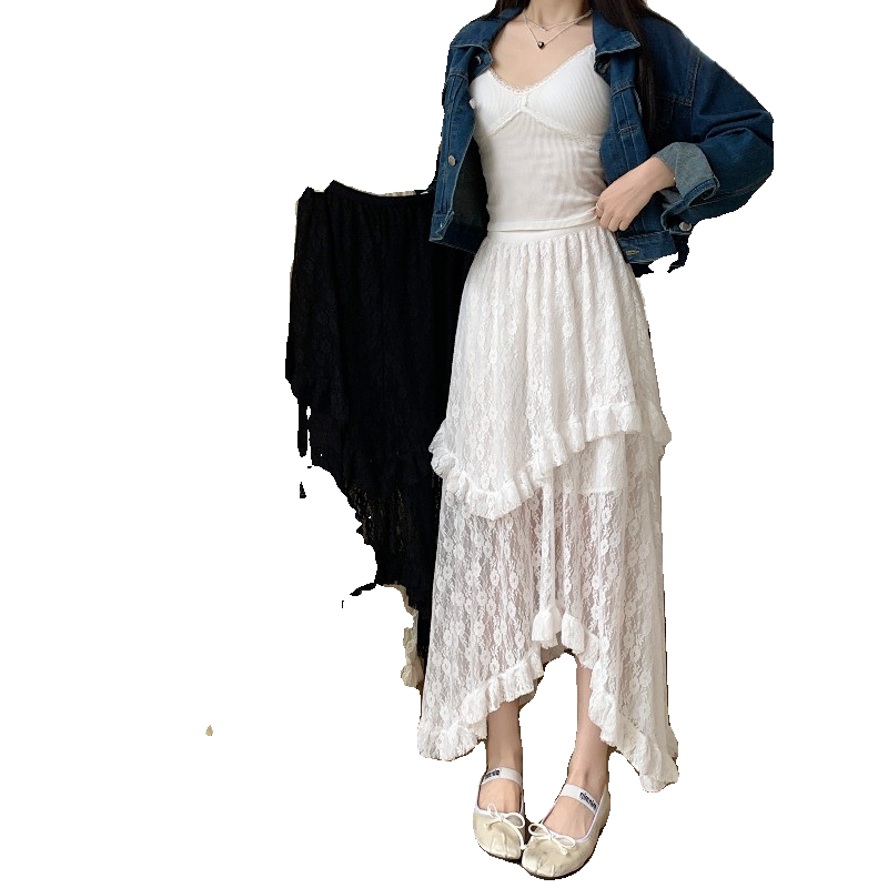 白色不规则蕾丝蛋糕半身裙女2024新款春秋法式木耳边a字中长裙子