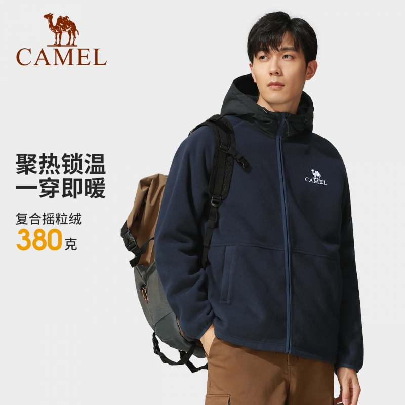骆驼抓绒衣女春秋新款连帽保暖摇粒绒冲锋衣内胆休闲外套男