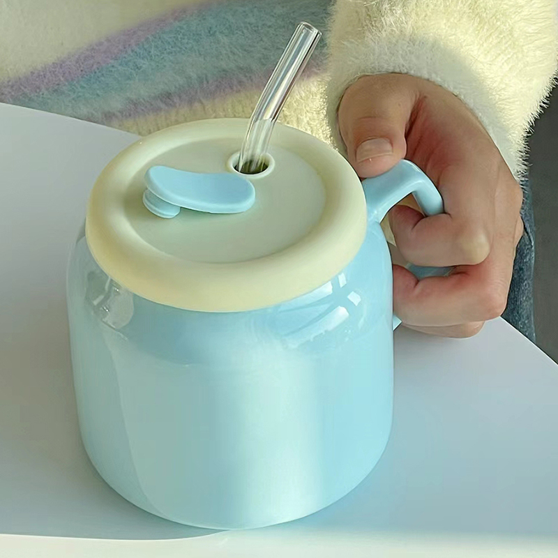 芋泥啵啵杯马克杯陶瓷奶呼呼杯子喝水吸管办公室学生女大容量水杯