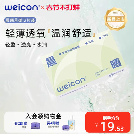 【新品】卫康晨曦月抛透明近视隐形眼镜2片水润透氧非离子水凝胶
