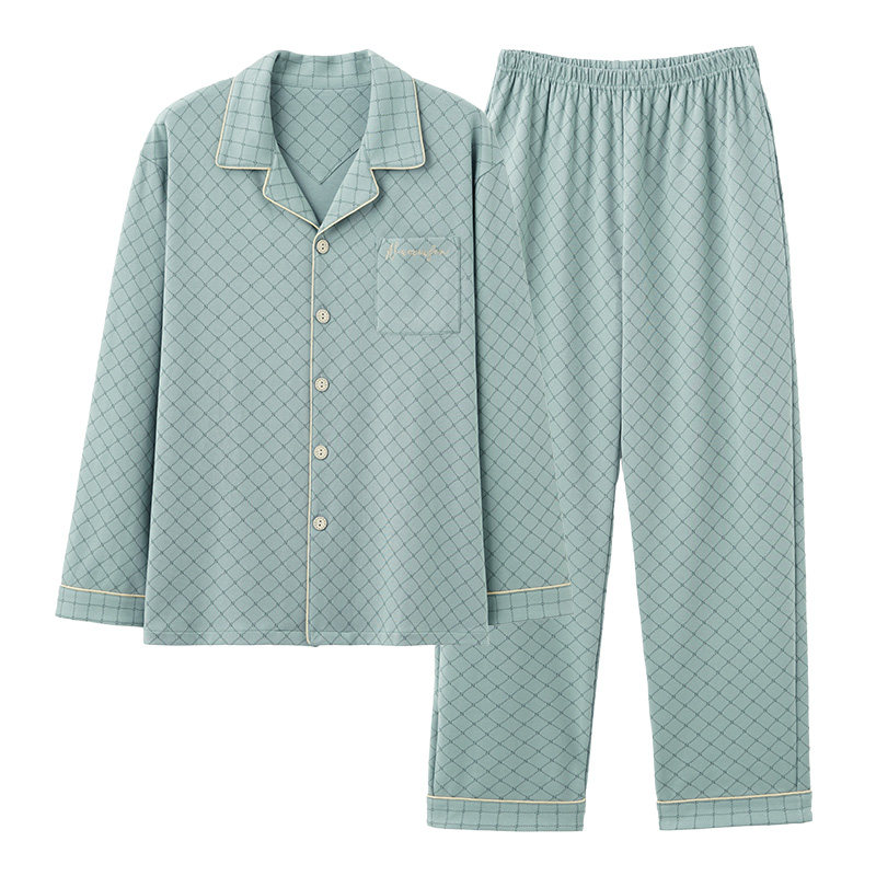 浪莎男士睡衣春秋季纯棉翻领长袖开衫休闲加大码青少年家居服套装