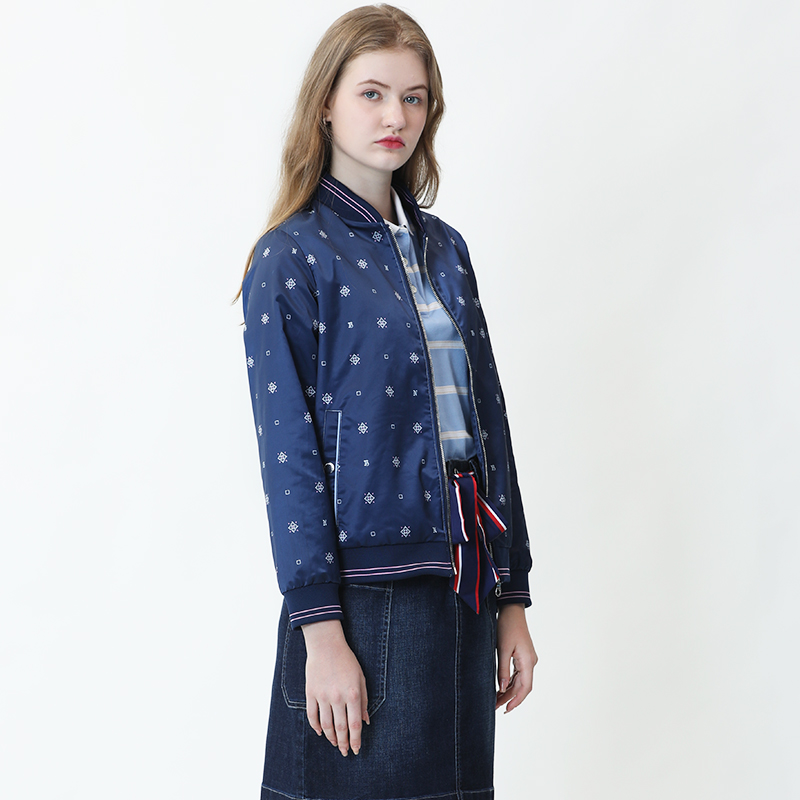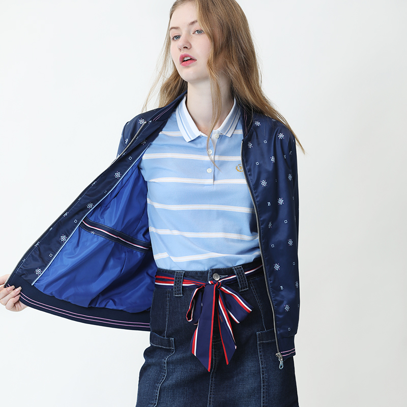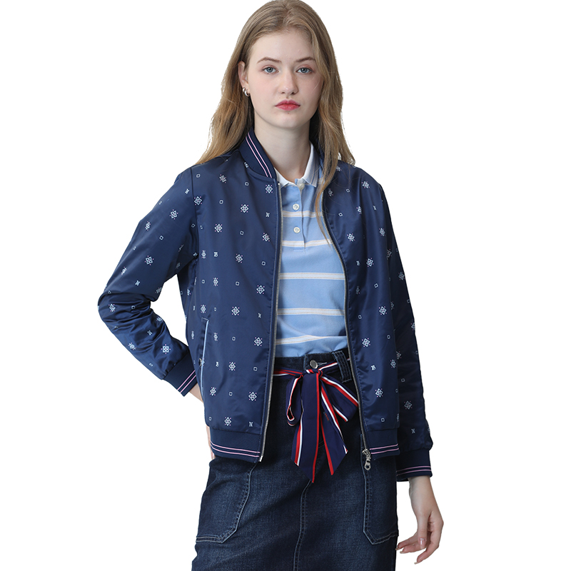 波顿2025春秋季新款女士棒球服潮流时尚美式休闲印花短款长袖外套