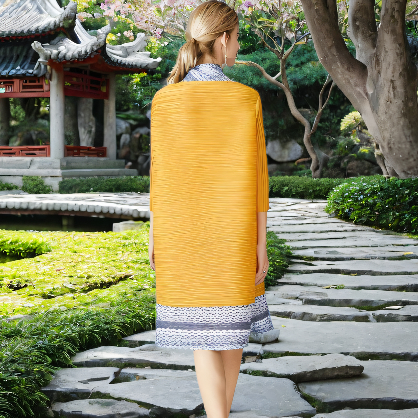 棠梨风穿搭秋季连衣裙褶皱围巾领宽松独特漂亮减龄淑女中长款裙子