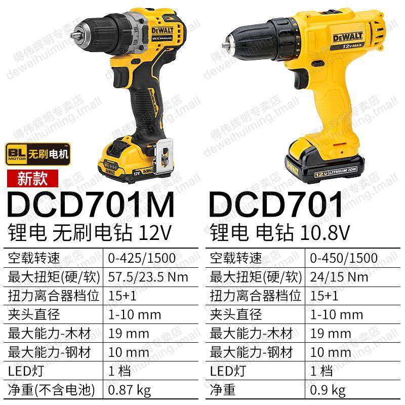新款得伟12V无刷充电钻DCD701M冲击钻DCD706电动螺丝起子电量显示