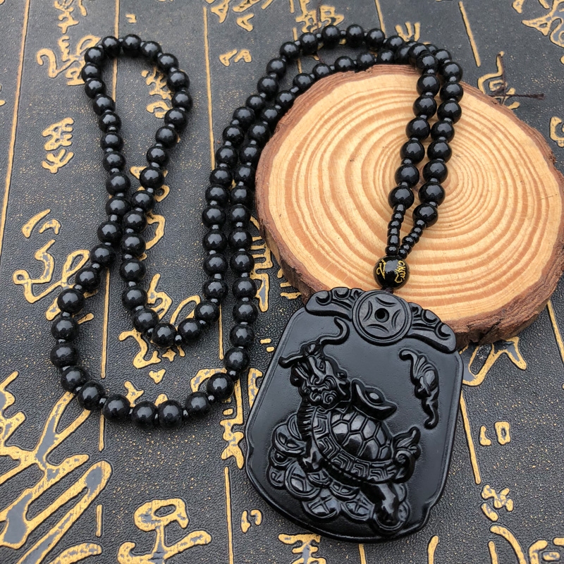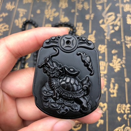 福龟待宝吊坠豁达客黑曜石项链男