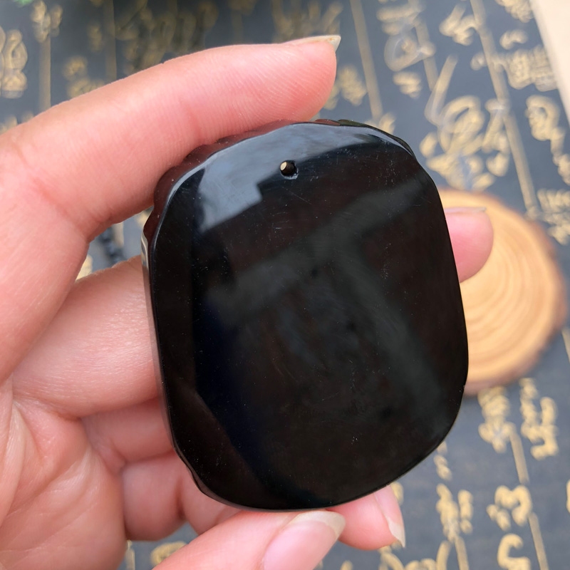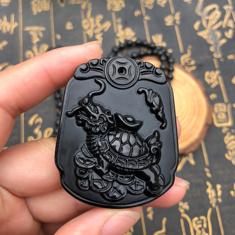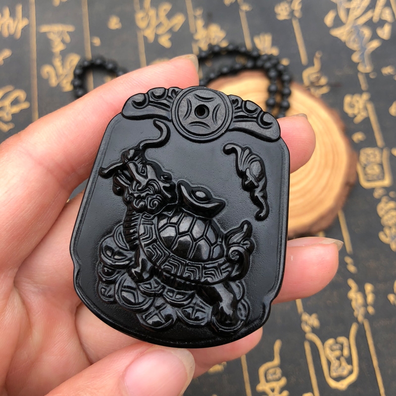 天然黑曜石福龟待宝吊坠男女龙龟玉佩项链情侣玉牌挂件神龟送证书