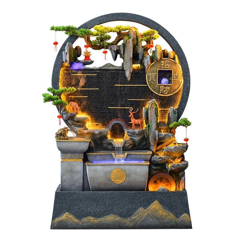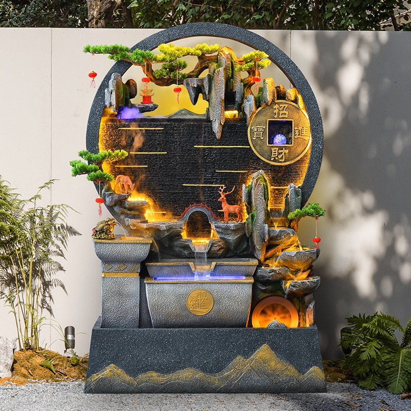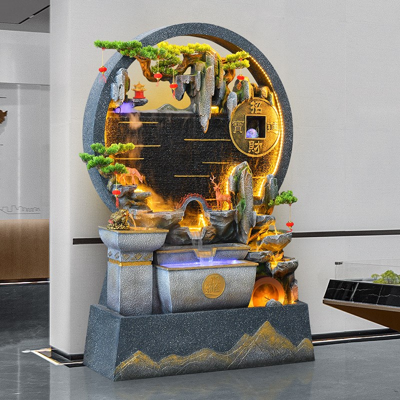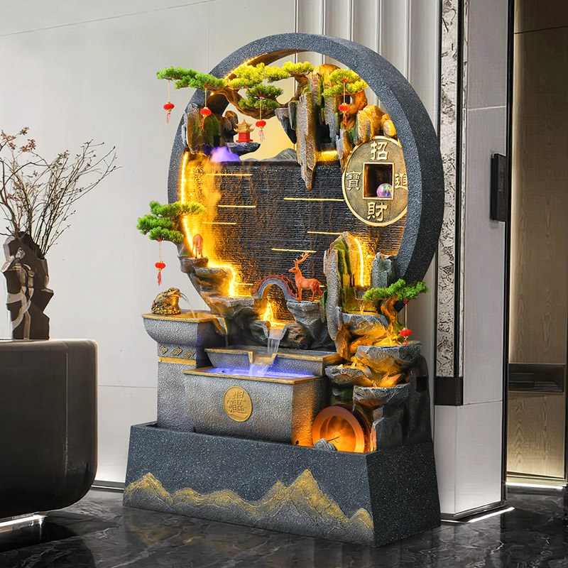 假山水幕墙流水生财摆件循环水景客厅喷泉造景隔断屏风招财风水轮