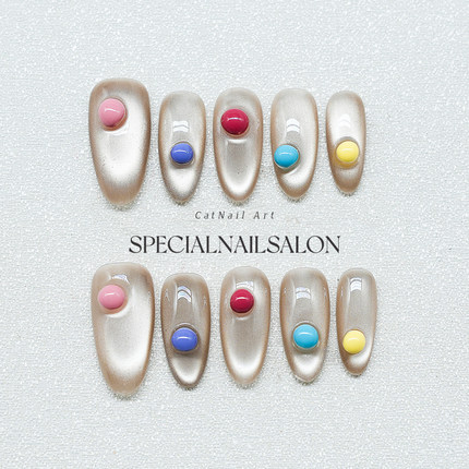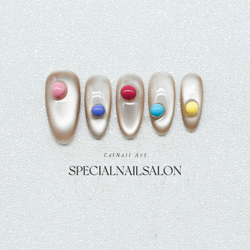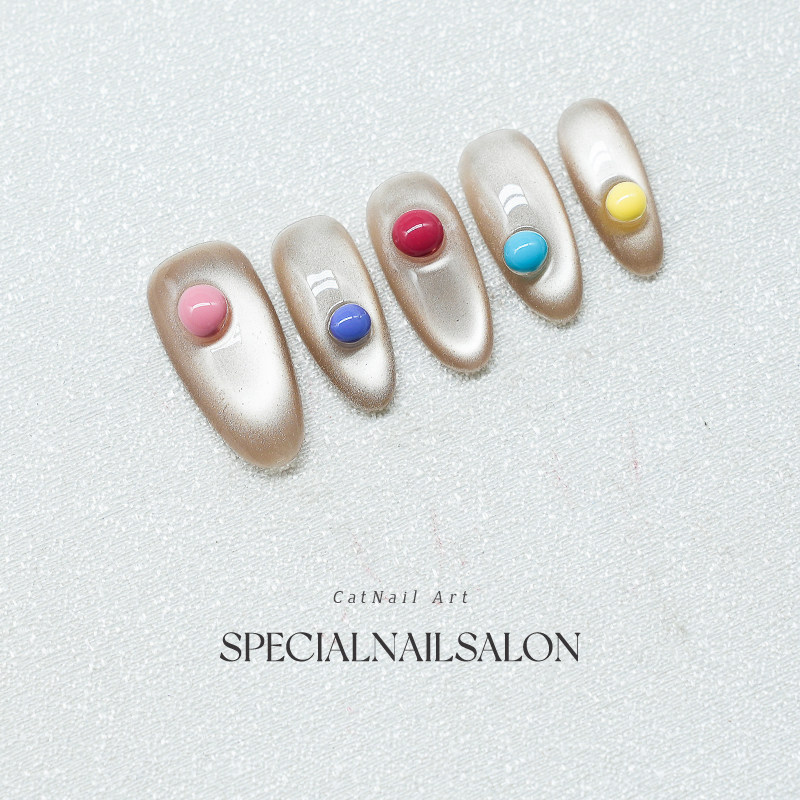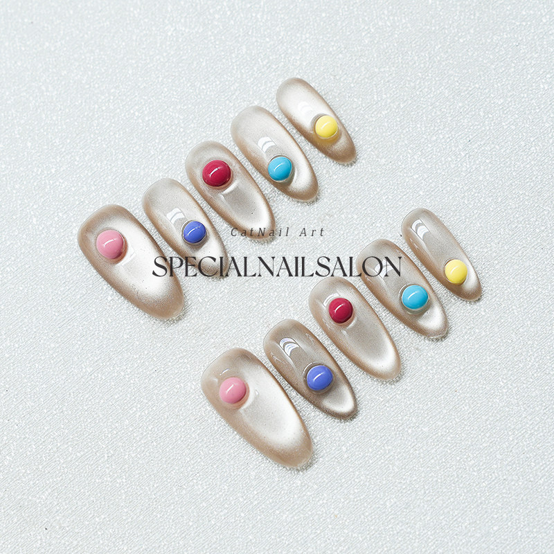 【五彩泡泡珠】纯手工穿戴甲2026新款多巴胺高级感猫眼显白美甲片