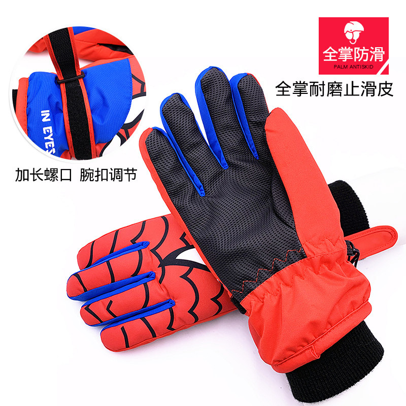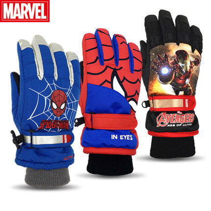 儿童防水手套迪士尼蜘蛛侠钢铁侠男孩冬户外玩雪保暖分指滑雪手套