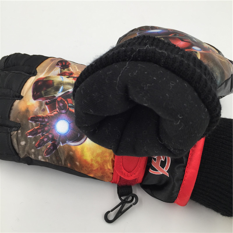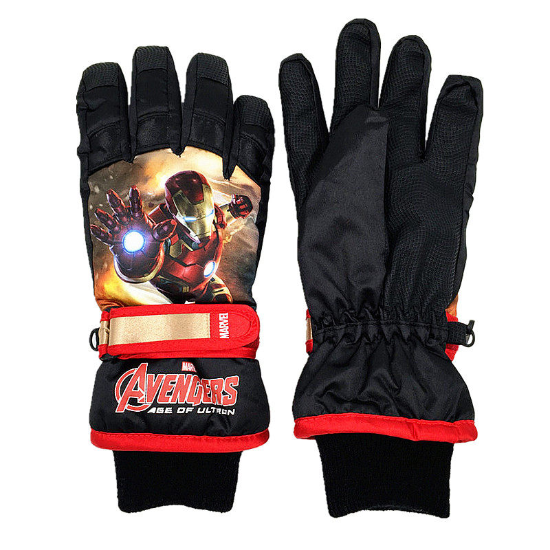 儿童防水手套迪士尼钢铁侠冬滑雪