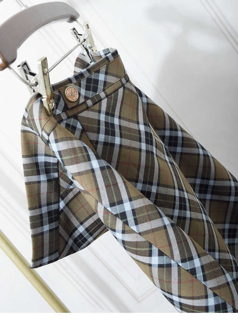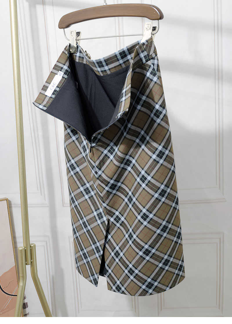 2024春夏新法式复古显瘦格子中长款半身裙直筒小A字高腰包臀裙女