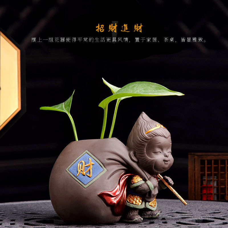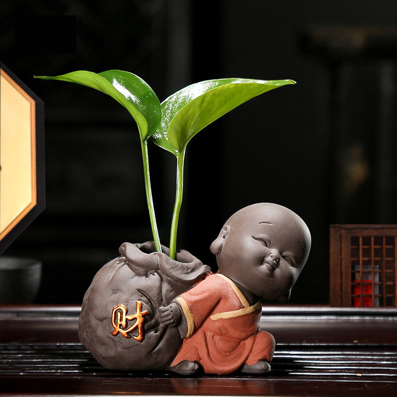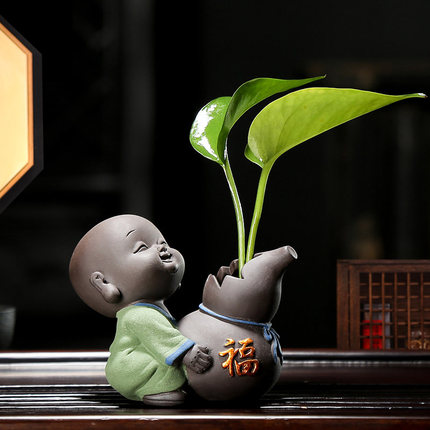 创意花器花插花瓶绿萝小和尚家居装饰品摆件茶桌陶瓷水培花盆容器