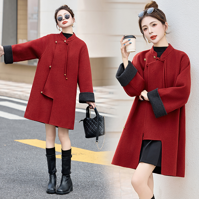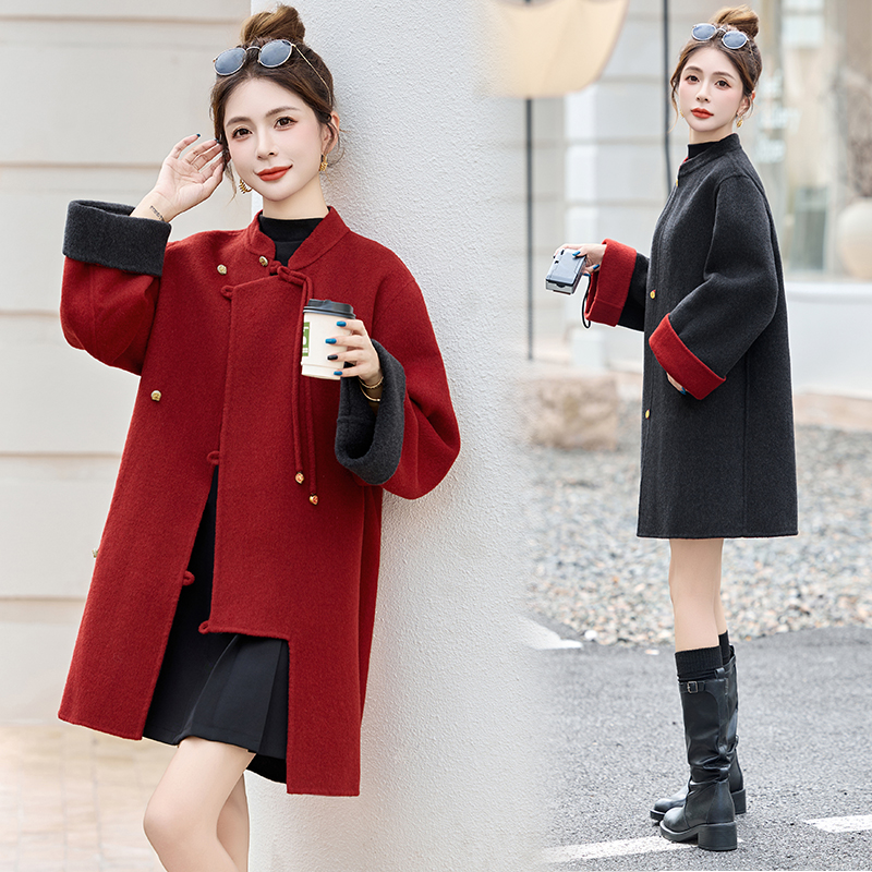 新中式双面羊毛大衣女中长款2025年新款盘扣斗篷羊毛呢子外套
