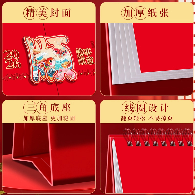台历2026年新款日历定制中国风创意桌面摆件红色新年马年喜庆年历办公计划记事打卡月历本定做广告位印刷logo