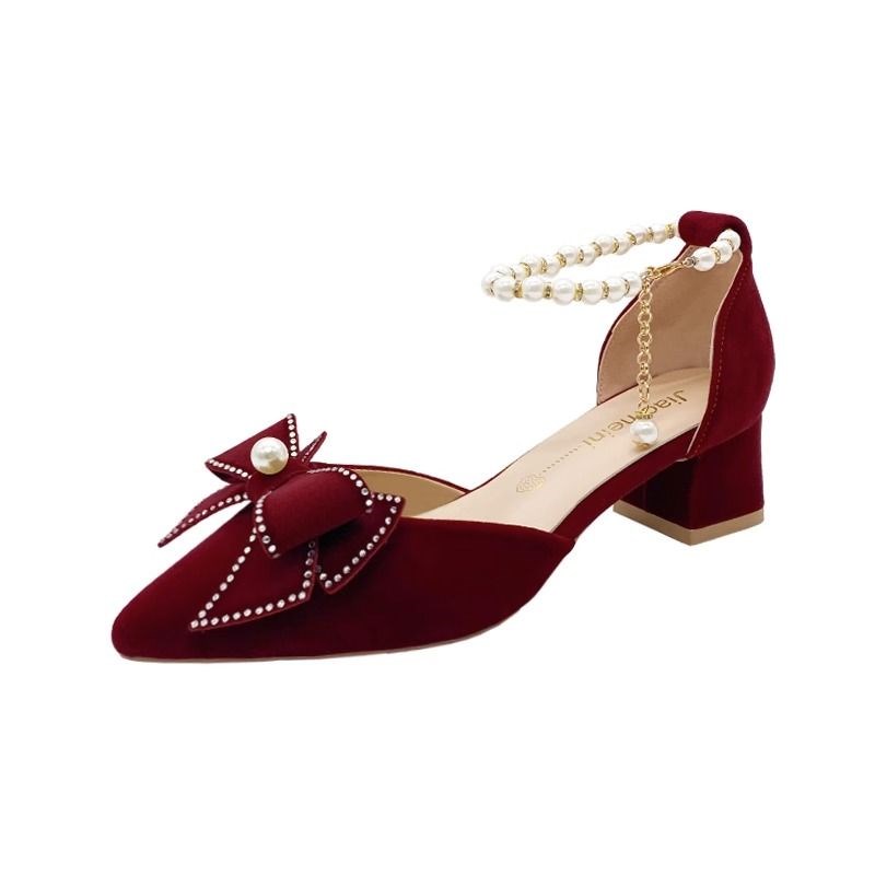 婚鞋不累脚2024年新款水晶红色礼服大气中式新娘禾秀两穿高跟鞋女