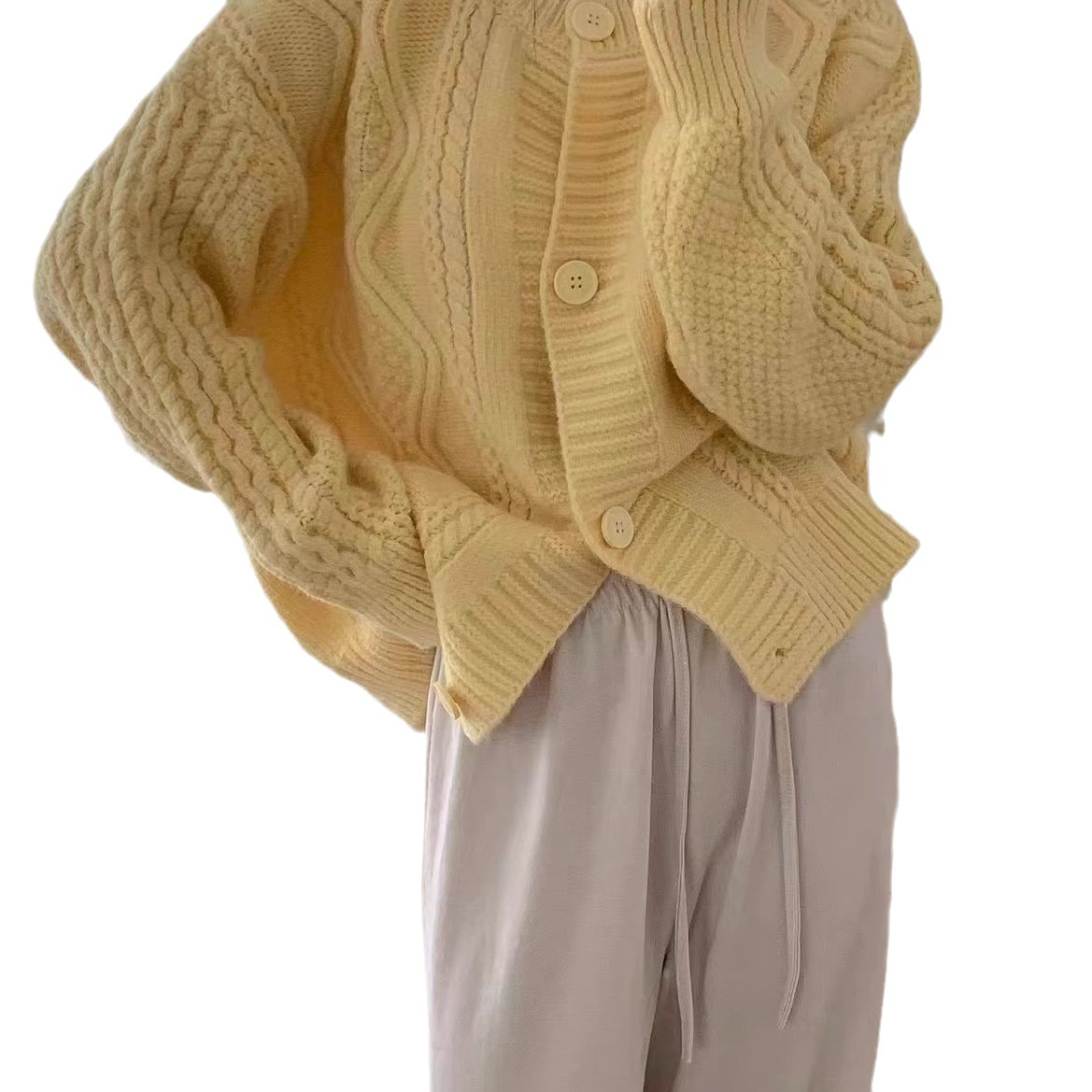 麻花针织开衫外套毛衣女