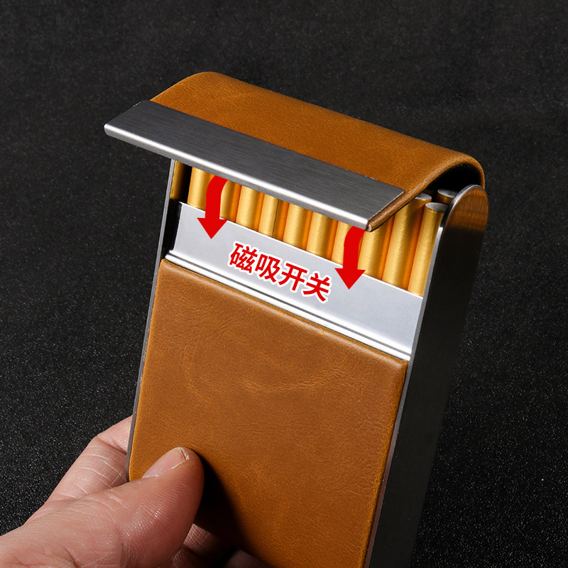 高档烟盒6.5mm中支20支装不锈钢磁吸翻盖烟夹超薄便携商务男士