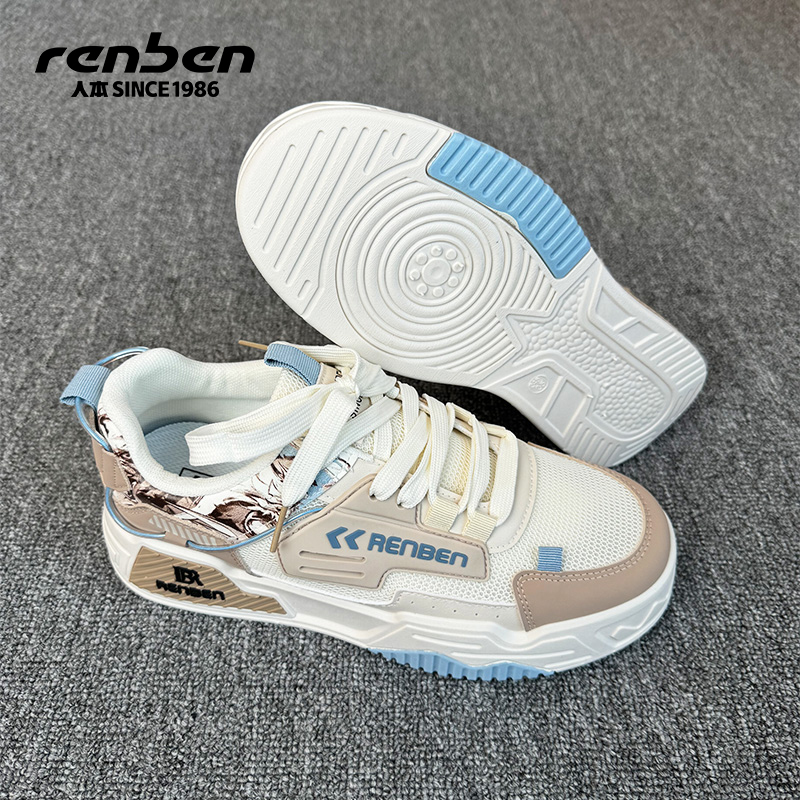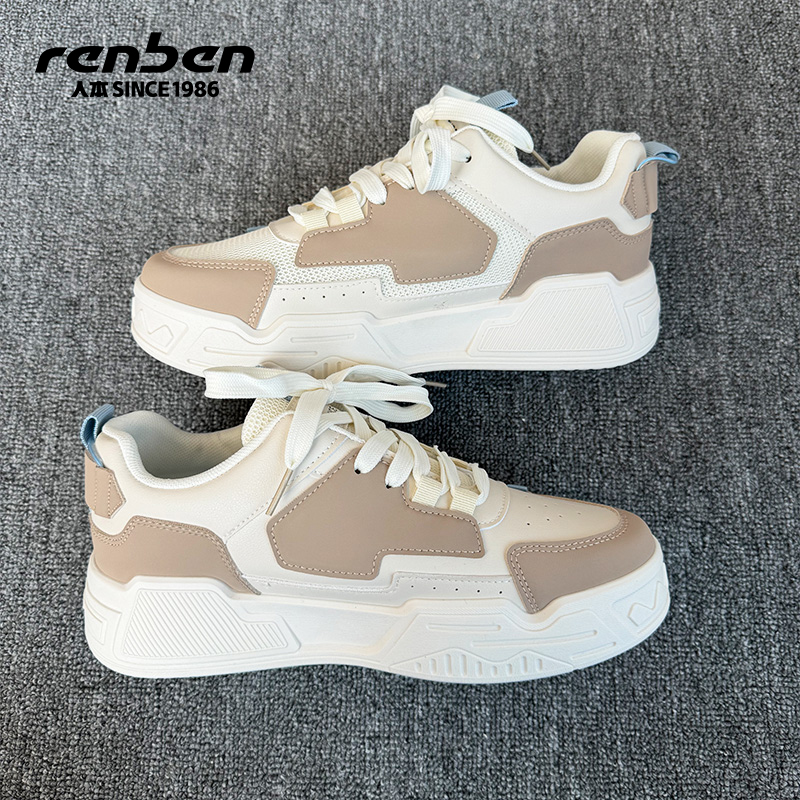人本板鞋男2025春秋新款网面透气百搭休闲厚底增高减震跑步运动鞋