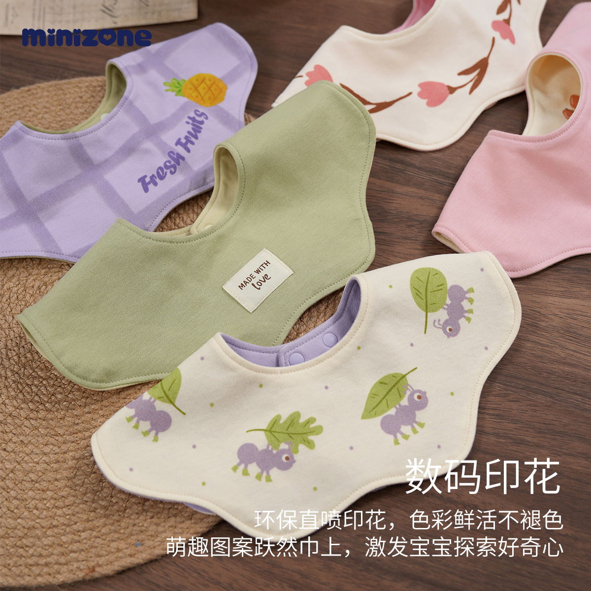 minizone婴儿口水巾纯棉a类新生儿围嘴男女宝宝围兜吸水婴儿用品