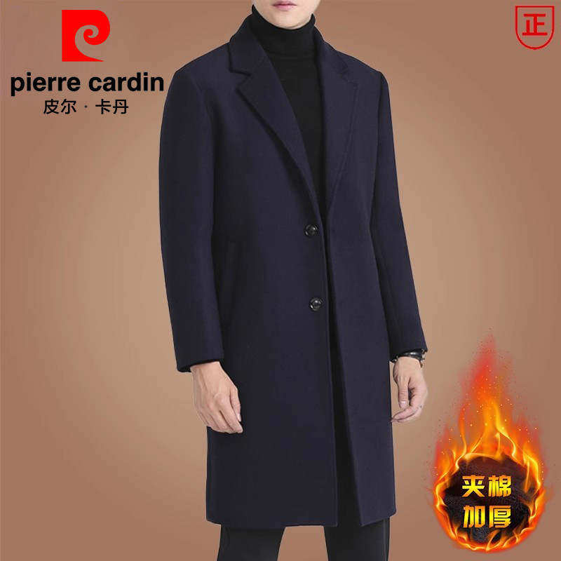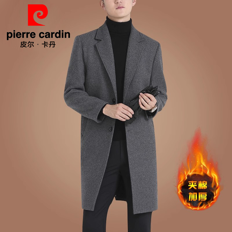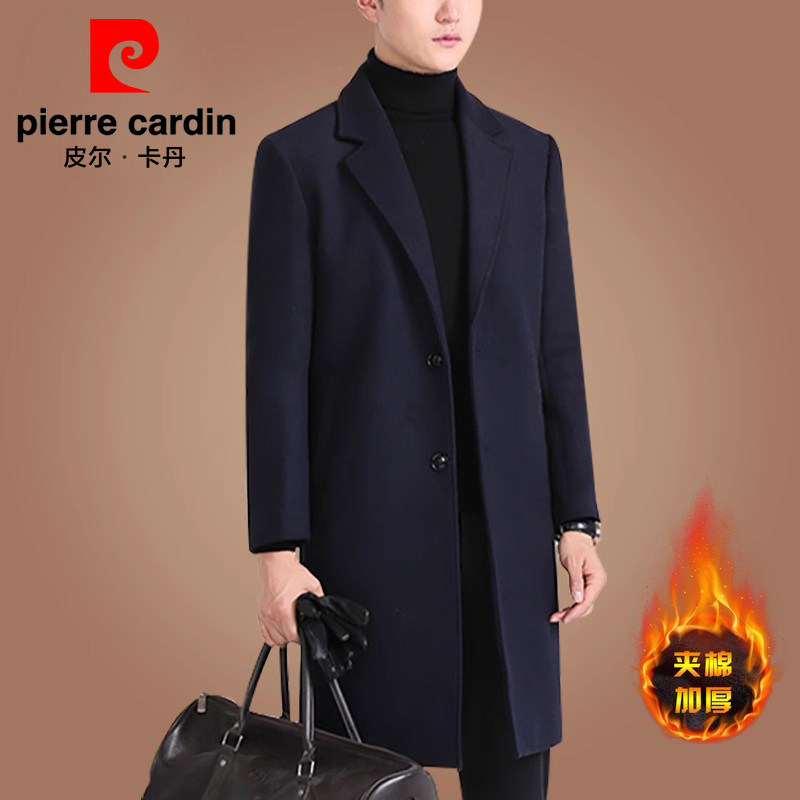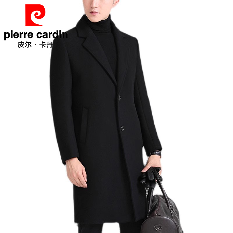 皮尔卡丹羊毛呢大衣男中长款韩版休闲中青年风衣冬季加厚呢子外套
