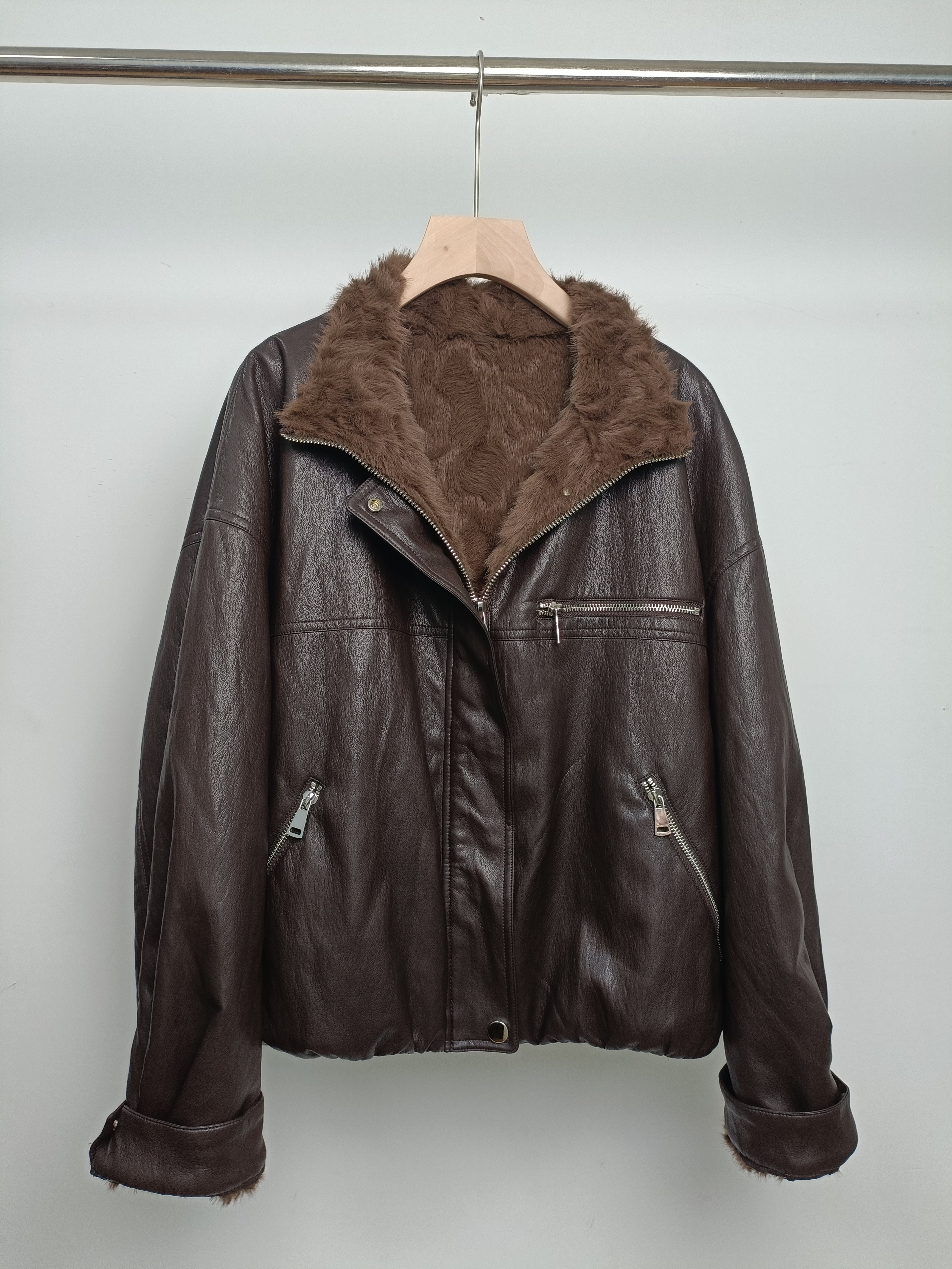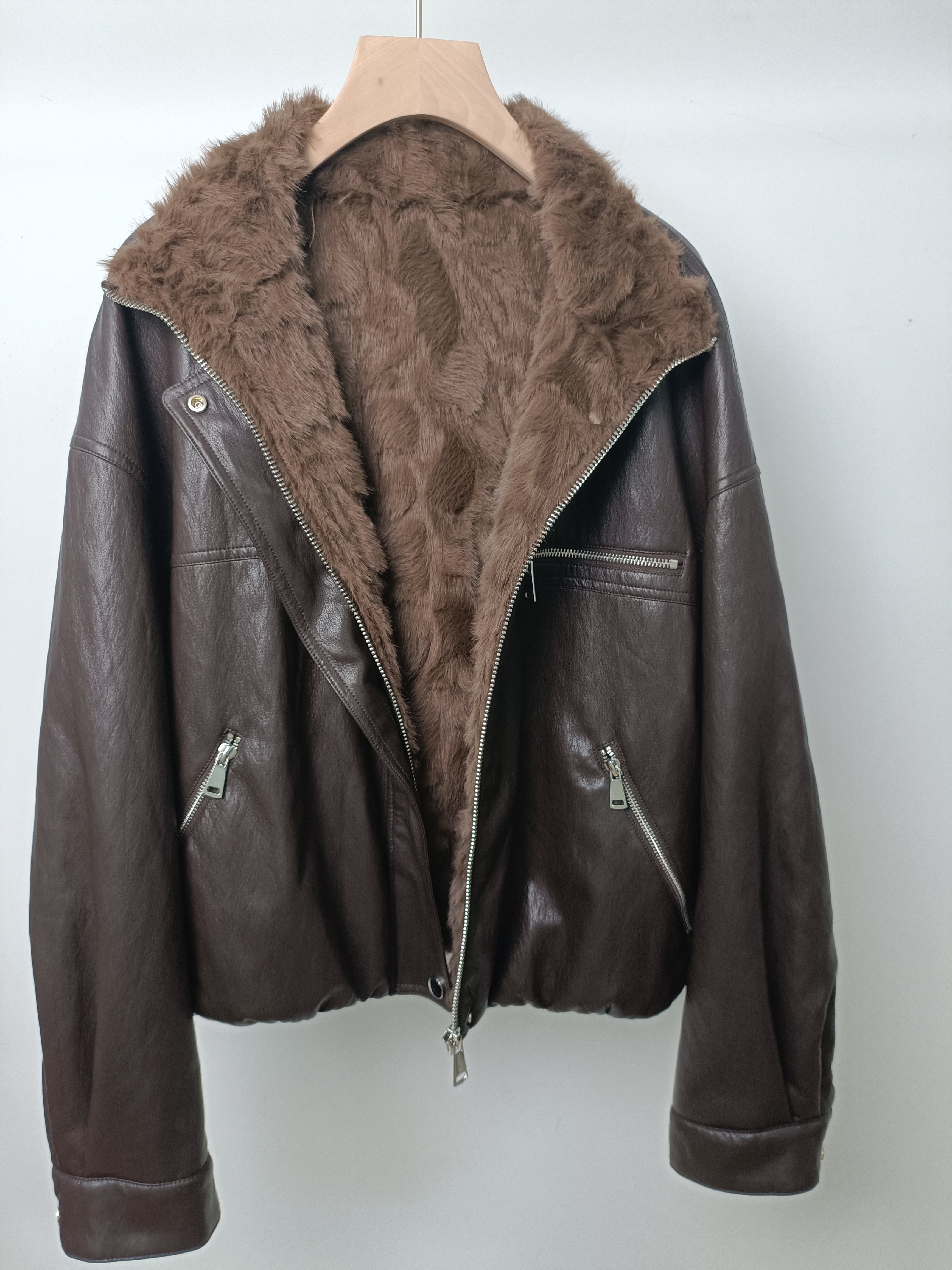 机车风皮毛一体外套短款皮衣夹克女士2025今年流行爆款上衣穿搭